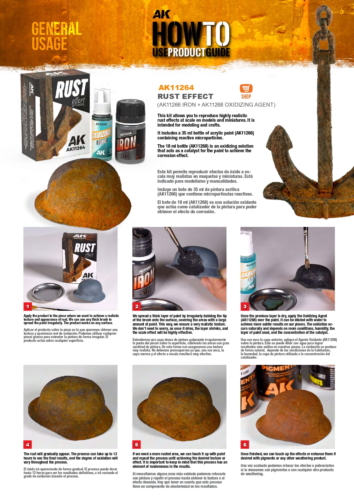 Specjalna farba akrylowa z mikrocząsteczkami żelaza, które naturalnie utleniają się w kontakcie z utleniaczem (AK 11268).