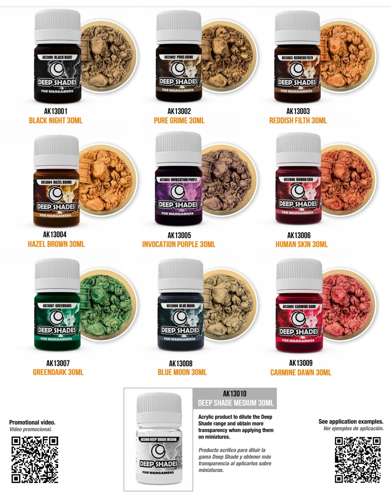 AK Interactive Deep Shades zostały opracowane, aby uzyskać proste i szybkie cieniowanie na miniaturach w małej skali, przy jednoczesnym zachowaniu matowego wykończenia.