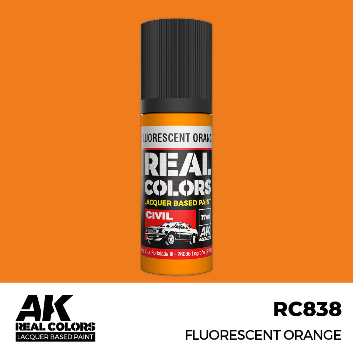 AK RC838 REAL COLORS Fluorescent Orange 17ml (lacquer paint)