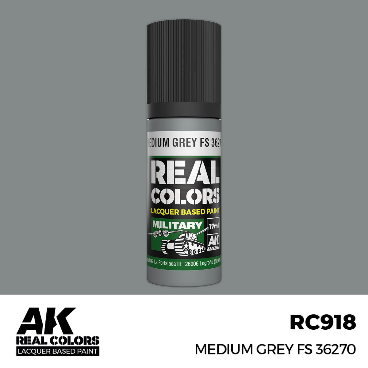 AK RC918 REAL COLORS Medium Grey FS 36270 17ml (lacquer paint)