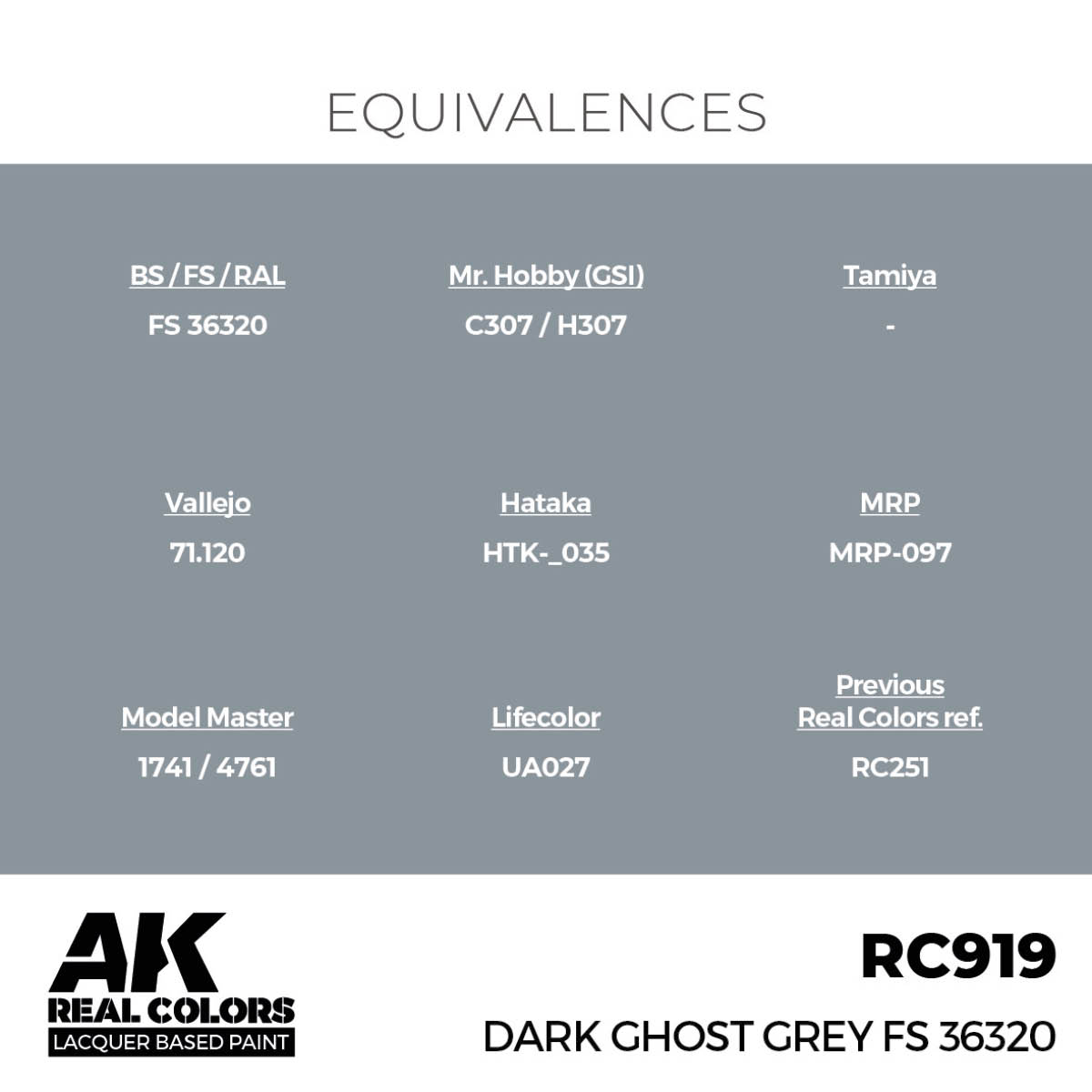AK RC919 REAL COLORS Dark Ghost Grey FS 36320 17ml (lacquer paint)
