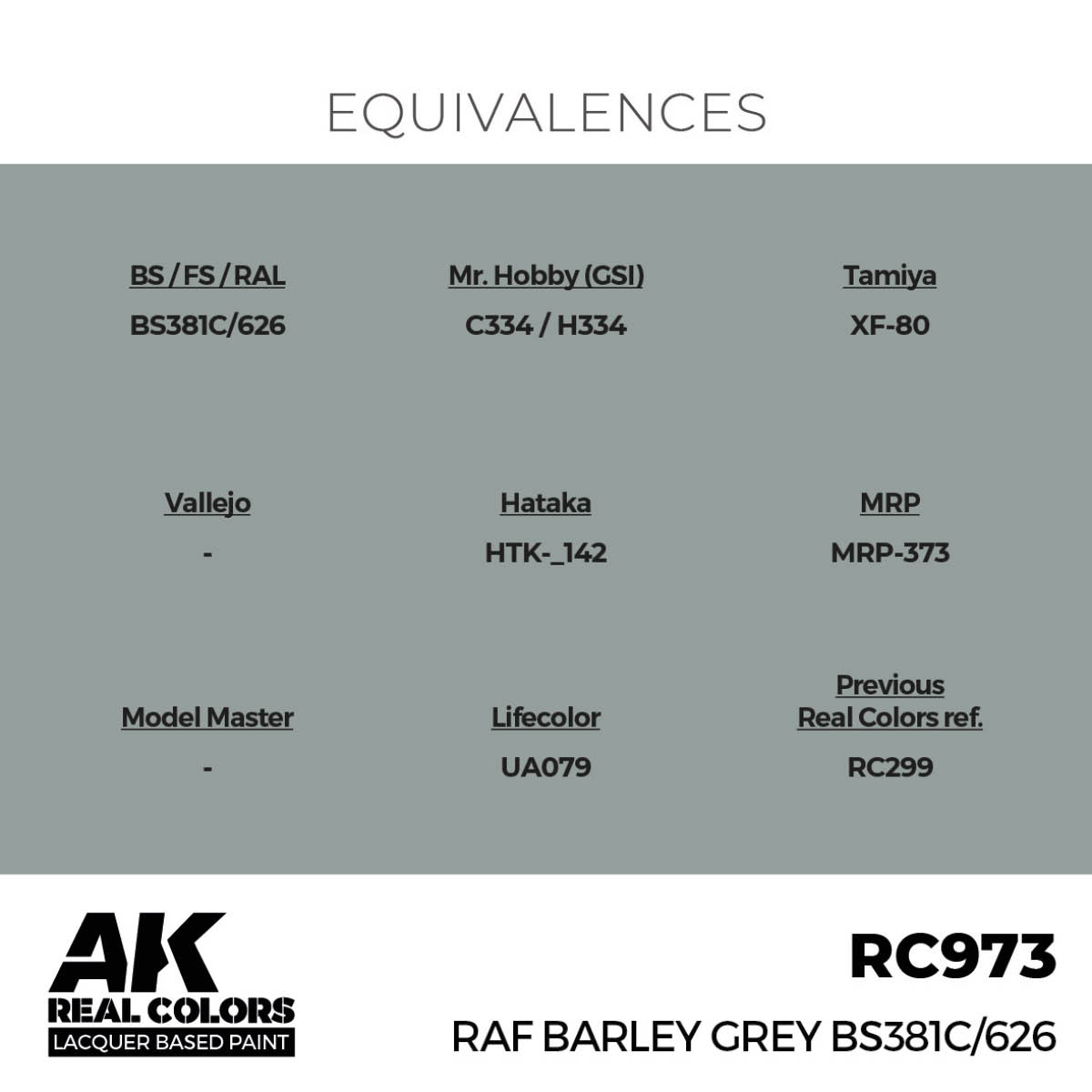 AK RC973 REAL COLORS RAF Barley Grey BS381C/626 17ml (lacquer paint)