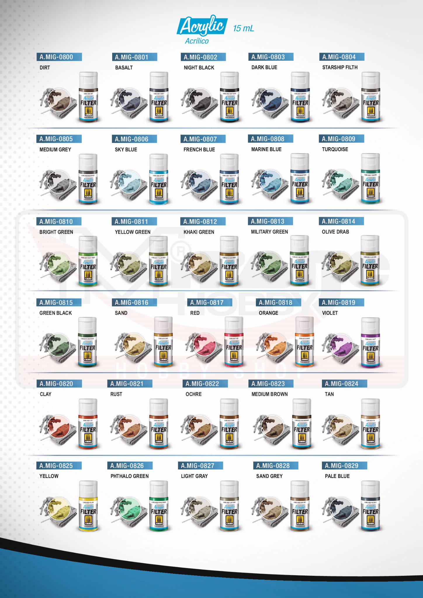 Filtry akrylowe oferują szybki czas schnięcia, natomiast emalie oferują większą wszechstronność czasu pracy podczas suszenia, wybierz wersję najlepiej dopasowaną do Twoich potrzeb. Jeśli zamierzasz łączyć różne produkty AMMO w celu uzyskania efektu atmosferycznego, filtry akrylowe będą idealnym wyborem do nałożenia po wyschnięciu innych glazur i produktów olejnych. Ale kolor bazowy musi być pomalowany akrylem. Świetnie sprawdzą się również jeśli cały proces malowania zostanie wykonany akrylami.