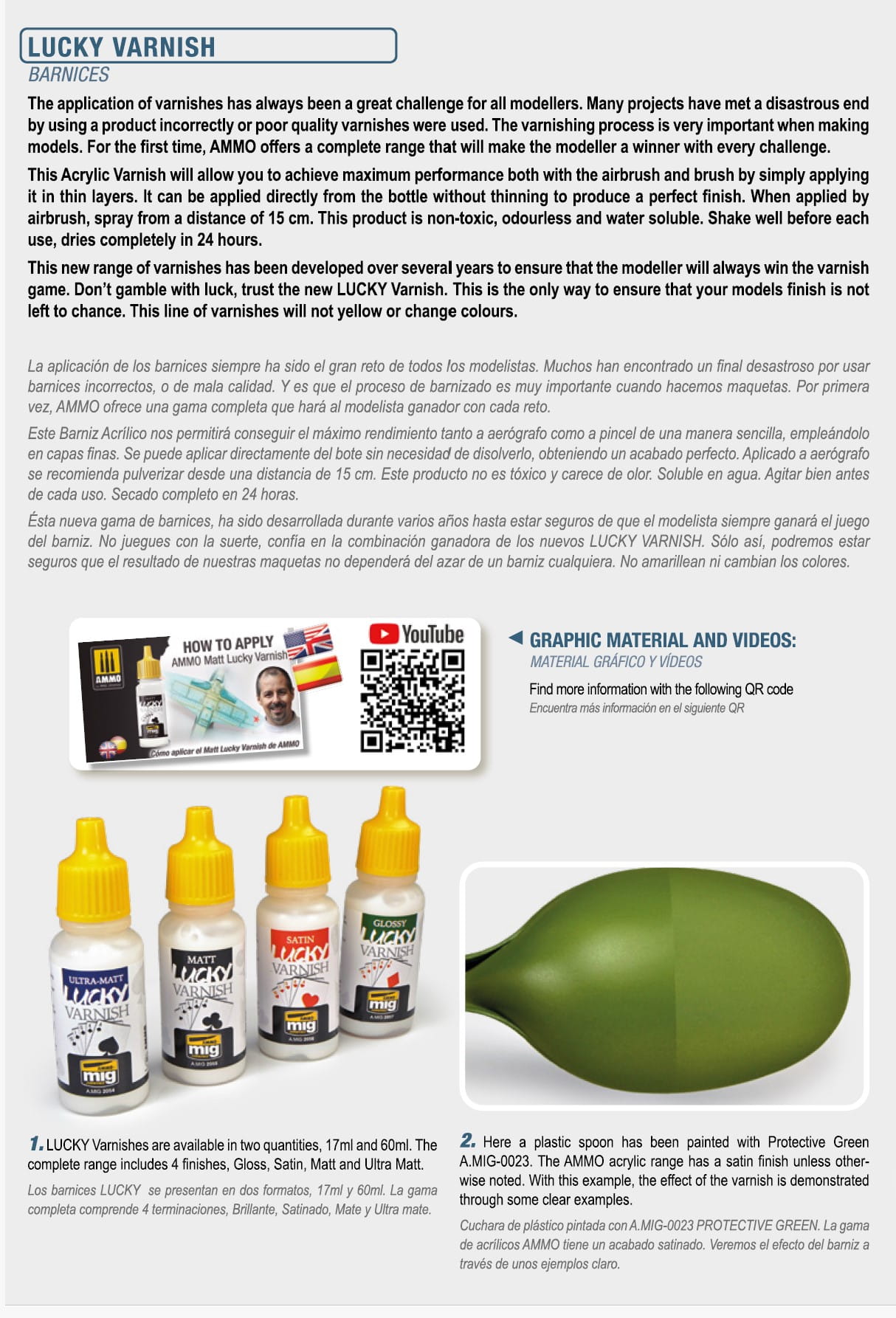 Lakiery akrylowe AMMO LUCKY Varnish pozwolą Ci w bardzo prosty sposób uzyskać najlepsze efekty zarówno pędzlem, jak i aerografem.