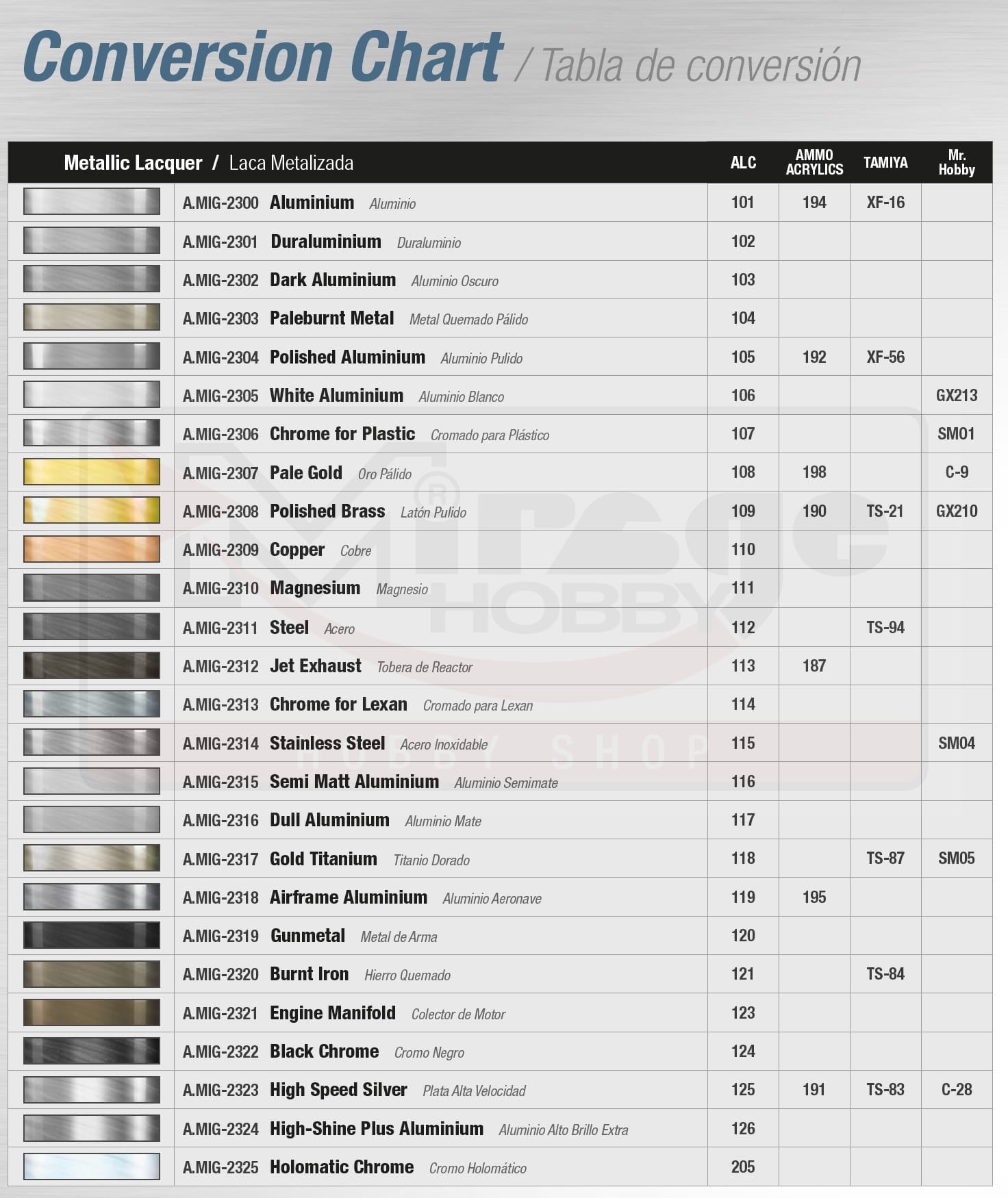 Korzystając z szerokiej gamy kolorów metalicznych Ammo A-Stand, możesz malować dowolne metaliczne wykończenia modeli, w tym miedź, mosiądz, złoto, chrom i różne odcienie palonego metalu. Te metaliczne kolory są niezwykle wytrzymałe i nie będą miały wpływu żadne produkty ani farby, a ich bardzo drobny pigment zapewnia całkowicie gładkie wykończenie.