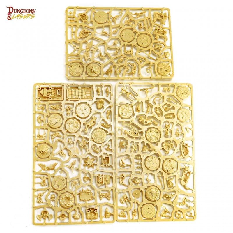 Zestaw widocznych na zdjęciu elementów do gier fabularnych i figurkowych w skali 25mm-28mm.
