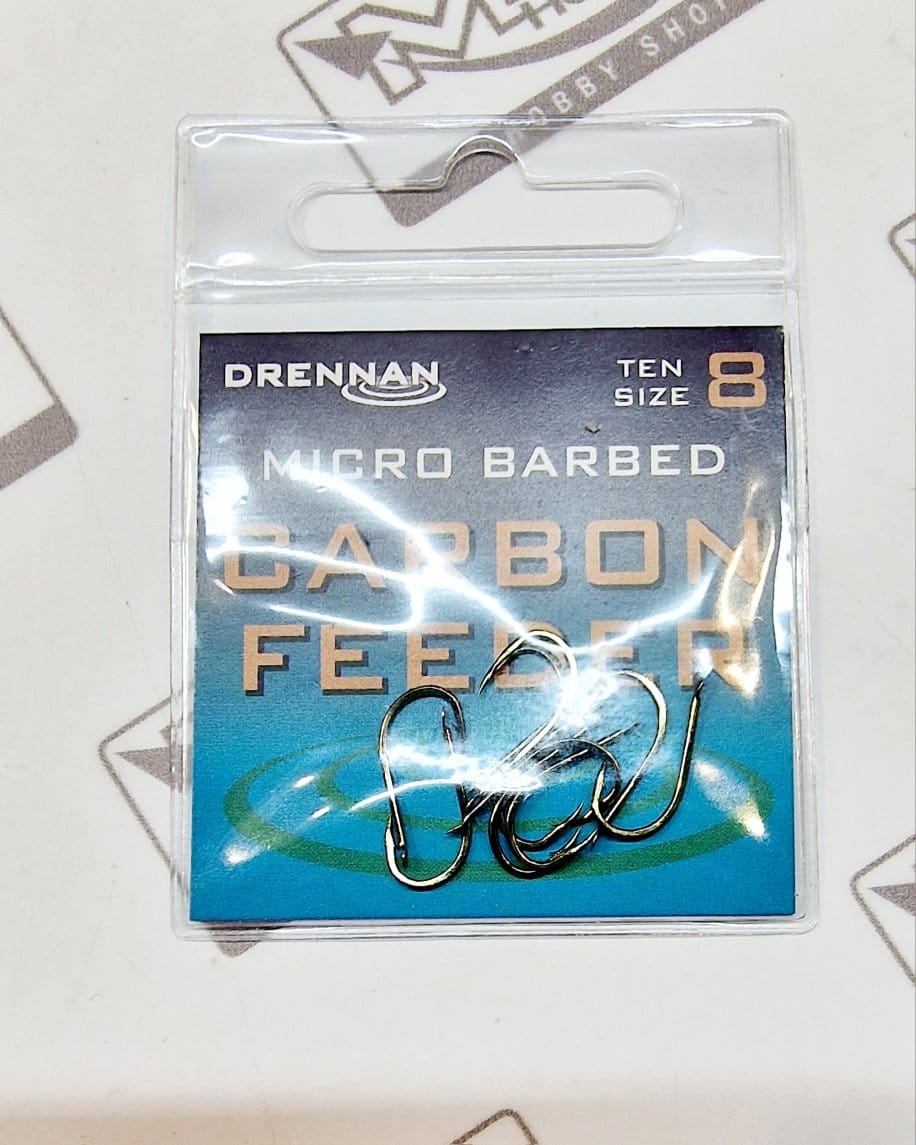 Łopatkowe haczyki Drennan Carbon Feeder to mikrozadziory z okrągłym zagięciem i krótkim trzonkiem. Ten wzór jest idealny do wszelkiego rodzaju prac feederowych na rzekach, kanałach i wodach stojących, gdzie dozwolone są zadziory.