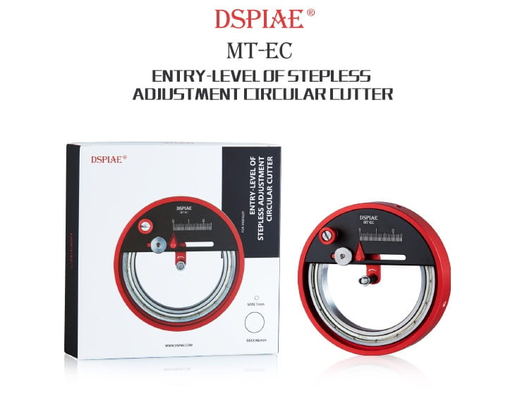 Wysokiej jakości cyrkiel z płynną regulacją średnicy cięcia do wycinania kół z papieru o maksymalnej grubości 0.2mm. Umożliwia wycinanie kół o średnicach od 1mm do 50mm. MT-EC to mniejszy brat bezstopniowego cyrkla MT-C.