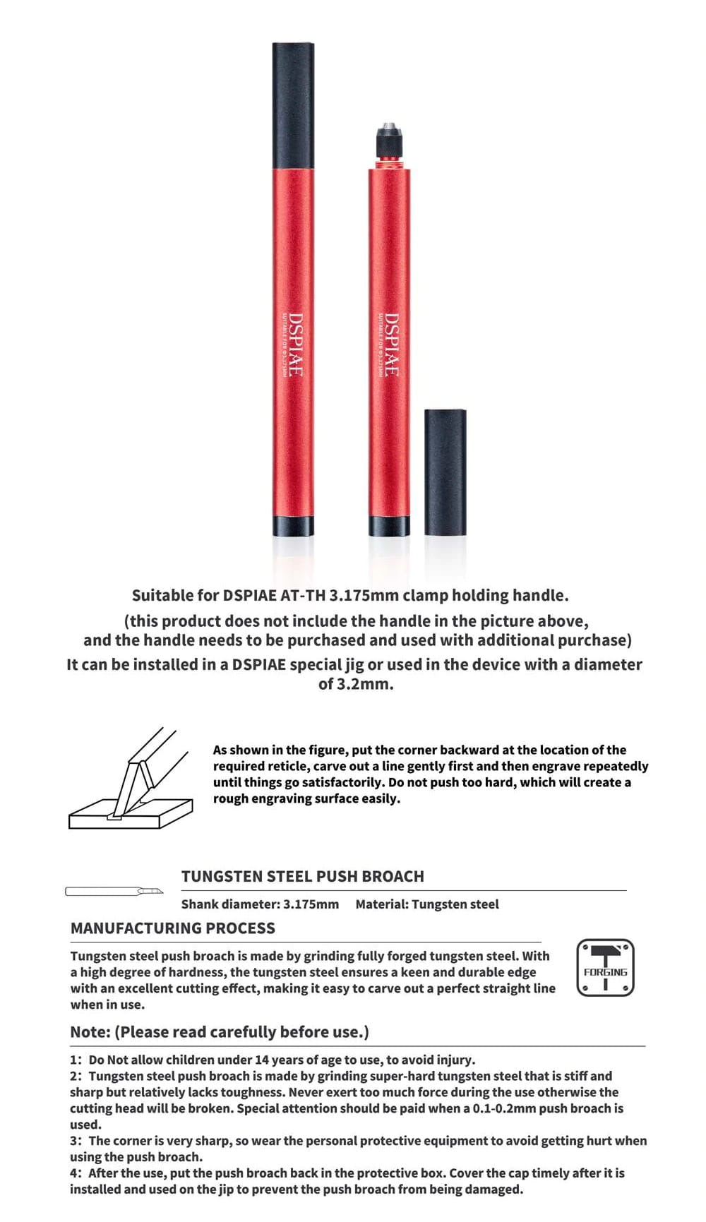 Wysokiej jakości mikro dłutko. Przeznaczone do rzeźbienia, rycia linii, usuwania nadmiaru materiału i zbędnych elementów. Przydatne przy usuwaniu wypukłych śladów po wypychaczach. Dłutko można zamocować w dedykowanym uchwycie DSPIAE AT-TH co ułatwia pracę. Szeroka oferta rozmiarów dłutek DSPIAE umożliwia wykorzystanie ich do wielu precyzyjnych prac modelarskich, rzeźbiarskich i hobbystycznych.