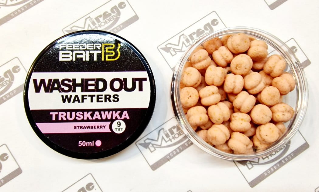 Kolejną zaletą Feeder Bait Washed Out Wafters jest to, że są idealnie balansujące nad hakiem. Jest to typowy Wafters - posiada neutralną wyporność. Kształt jest innowacyjny, w przynęcie wykonano wcięcie do mocowania gumki co sprawi, że długo utrzymuje się na włosie i nie spada.