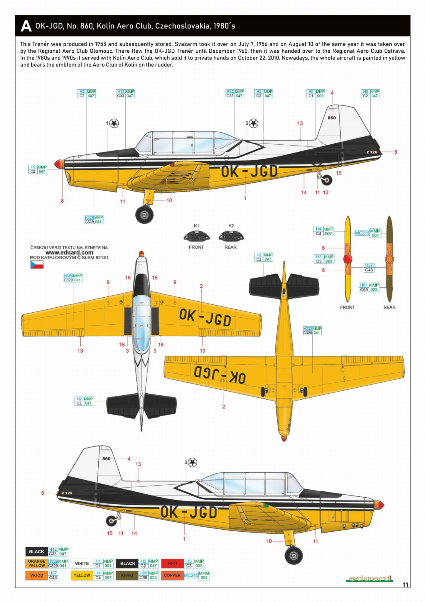 - Z-126 Trenér 1/48 - OK-JGD, nr 860, Aeroklub Kolín, Czechosłowacja, lata 80.