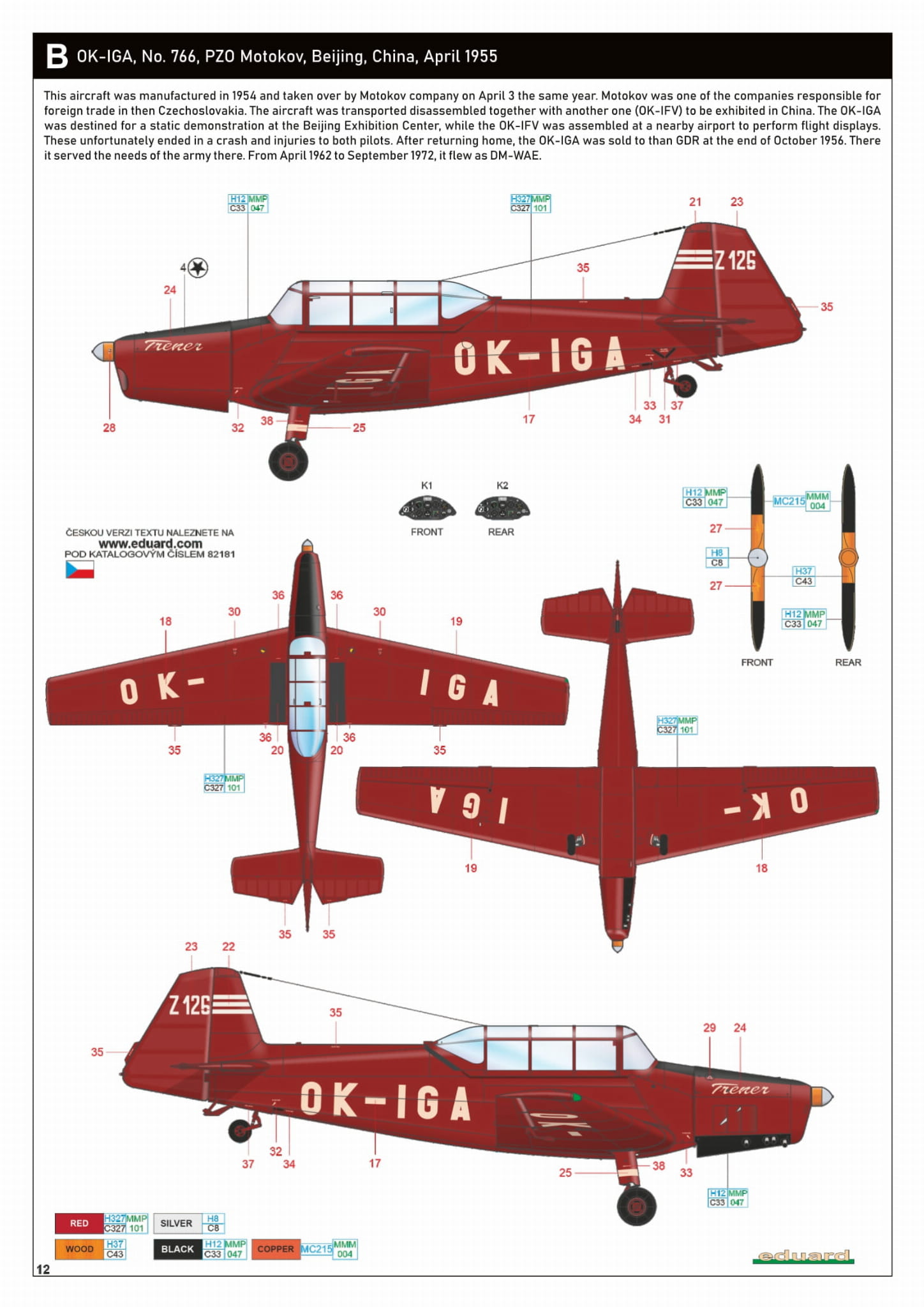 - Z-126 Trenér 1/48 - OK-IGA, nr 766, PZO Motokov, Pekin, Chiny, kwiecień 1955