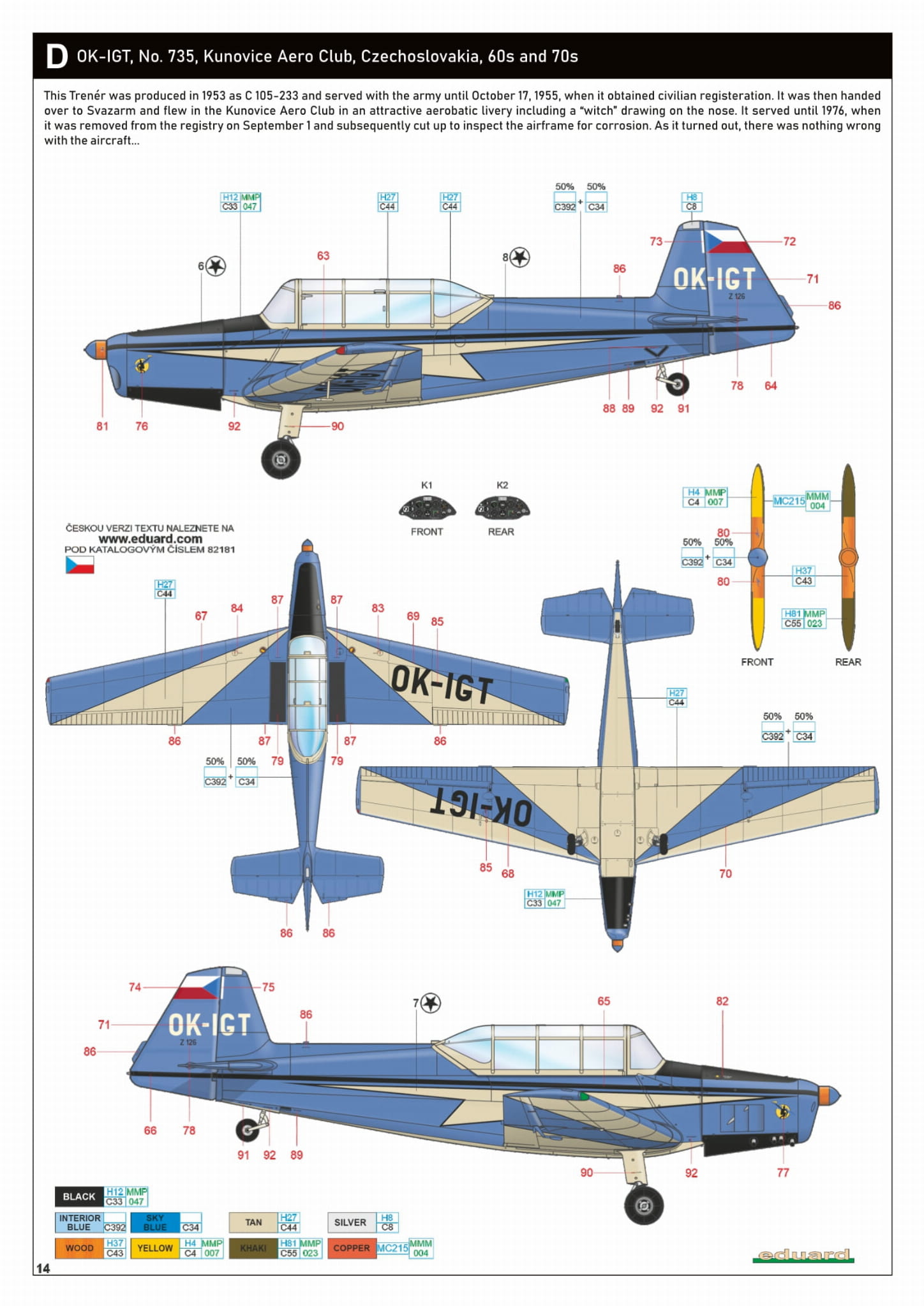 - Z-126 Trenér 1/48 - OK-IGT, nr 735, Aeroklub Kunovice, Czechosłowacja, lata 60. i 70.