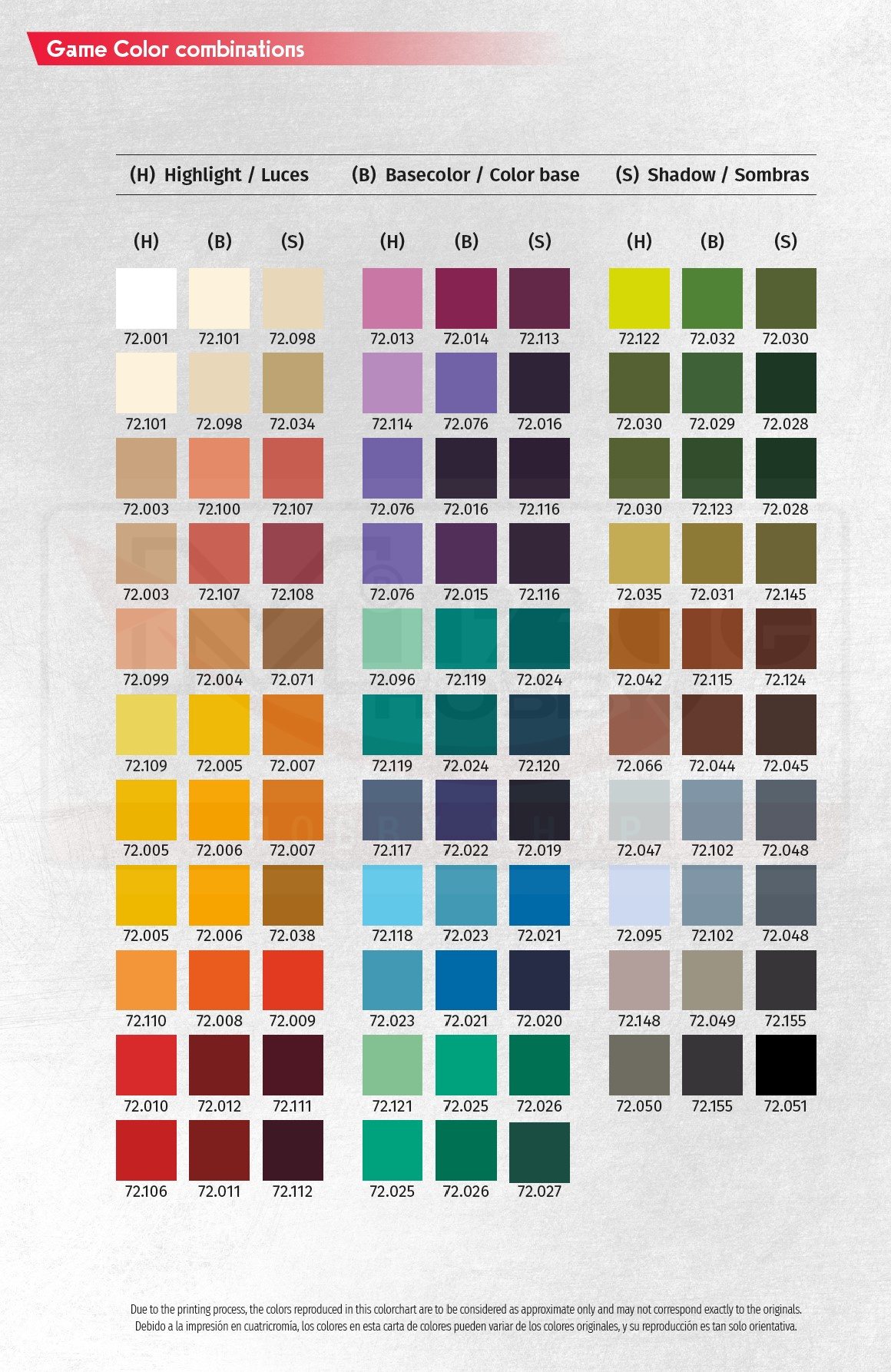 Receptura tych kolorów została opracowana z uwzględnieniem faktu, że niektóre z tych figurek są używane w grach stołowych, dzięki czemu paleta Game Color jest produkowana z rewolucyjnej nowej żywicy, która zapewnia niezwykłą odporność na uszkodzenia spowodowane częstą obsługą.