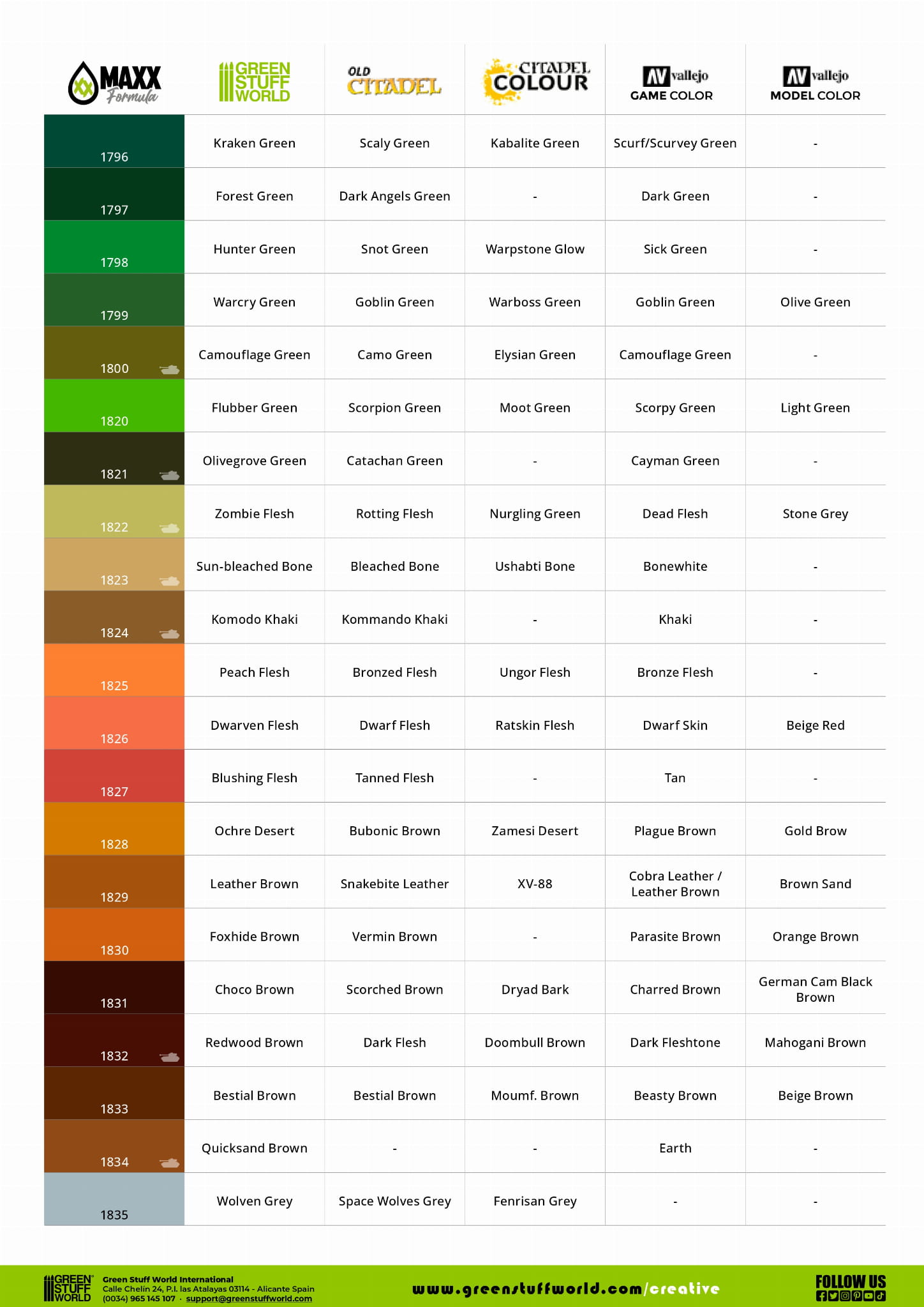 Dzięki pełnemu spektrum podstawowych tonów i odcieni niezbędnych w grach wojennych, pojazdach, miniaturach i dioramach, a także unikalnym kolorom dostępnym wyłącznie dla GSW, ta seria ma na celu zapewnienie wszystkiego, czego hobbysta potrzebuje do swoich projektów.