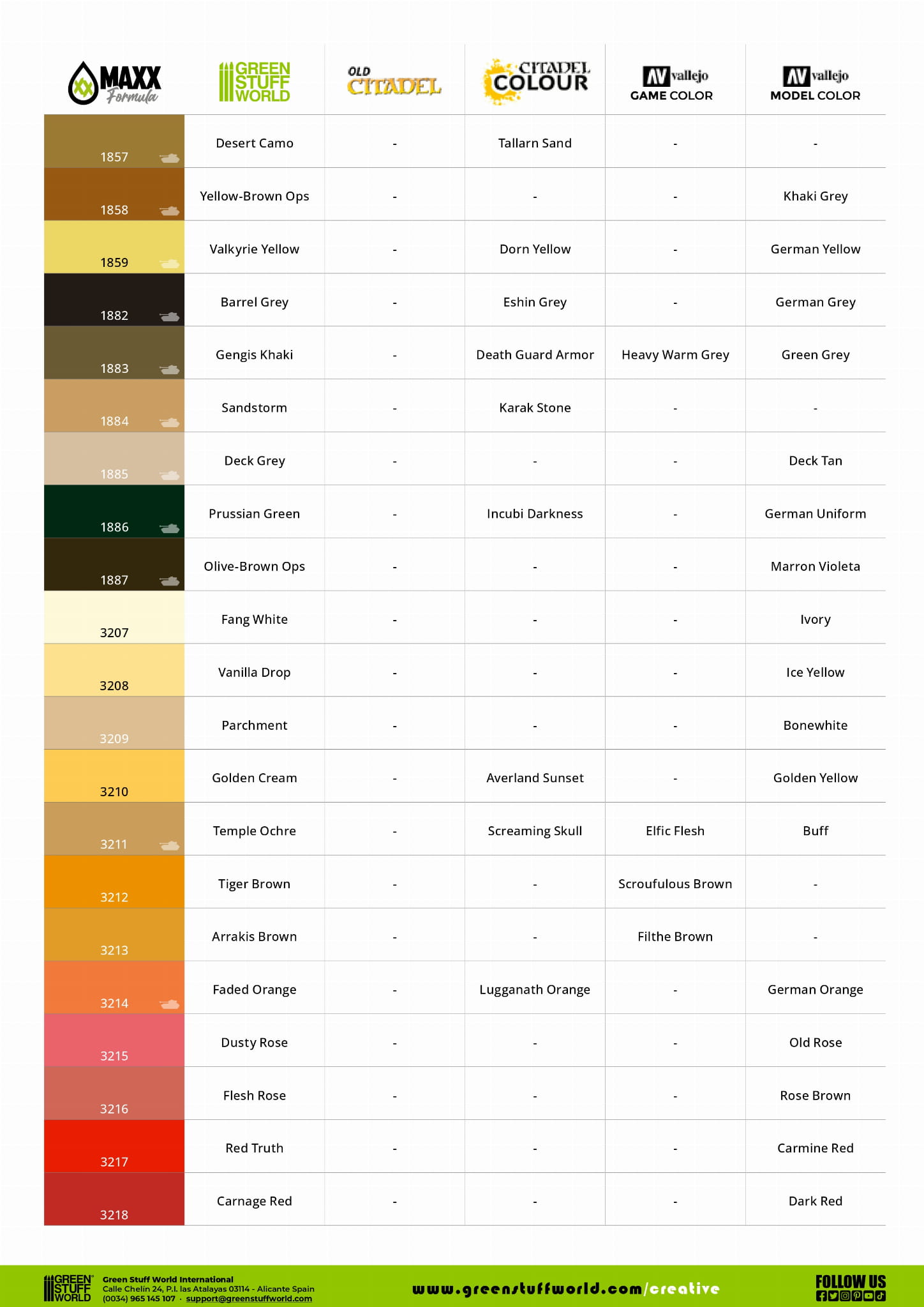 Dzięki pełnemu spektrum podstawowych tonów i odcieni niezbędnych w grach wojennych, pojazdach, miniaturach i dioramach, a także unikalnym kolorom dostępnym wyłącznie dla GSW, ta seria ma na celu zapewnienie wszystkiego, czego hobbysta potrzebuje do swoich projektów.
