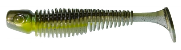 Gdy prowadzimy ją szybciej, umieszczony pod kontem 90 stopni ogonek wprawia cały korpus w drgania. Korpus został zbudowany jak szkielet, więc do produkcji użyto stosunkowo niewiele materiału, co dodatkowo je wzmacnia. Boki przynęty są żebrowane co sprawia, że jej powierzchnia jest bardziej miękka i drapieżniki nie wypluwają raz pobranej przynęty. Anyżkowy smak i aromat.