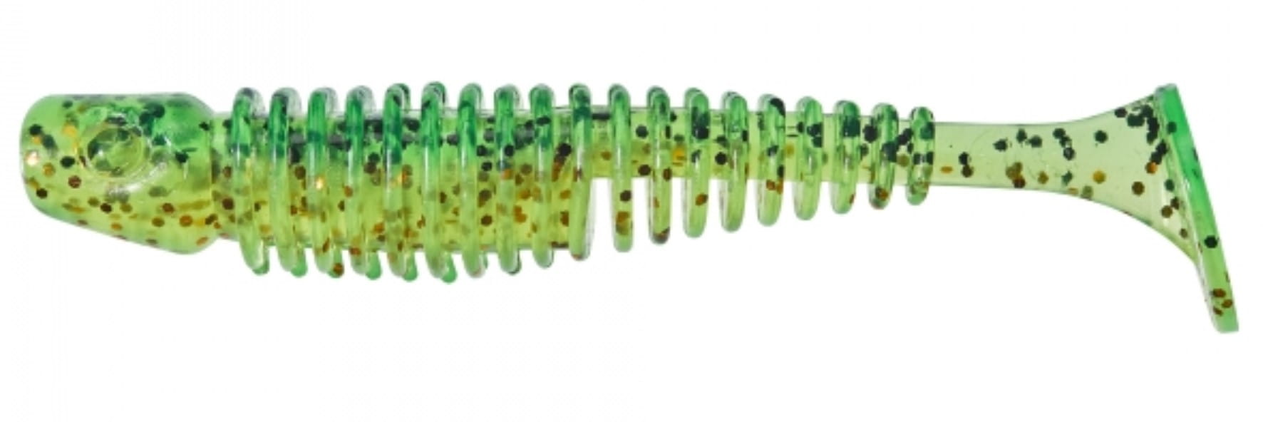Gdy prowadzimy ją szybciej, umieszczony pod kontem 90 stopni ogonek wprawia cały korpus w drgania. Korpus został zbudowany jak szkielet, więc do produkcji użyto stosunkowo niewiele materiału, co dodatkowo je wzmacnia. Boki przynęty są żebrowane co sprawia, że jej powierzchnia jest bardziej miękka i drapieżniki nie wypluwają raz pobranej przynęty. Anyżkowy smak i aromat.