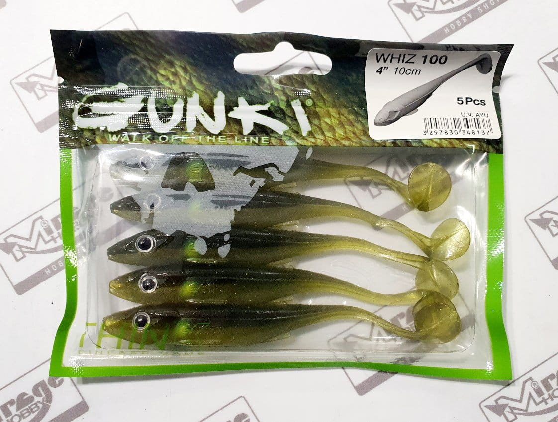 Gumy Gunki Whiz mają sylwetkę identyczną, jak jej pierwowzór - duże, realistyczne oko. Zaokrąglona płetwa piersiowa została zaprojektowana aby przyciągnąć drapieżniki żerujące na narybku. Długi ogon typu shad emituje żywe drobne wibracje, które działają szczególnie skutecznie na okonie i sandacze.