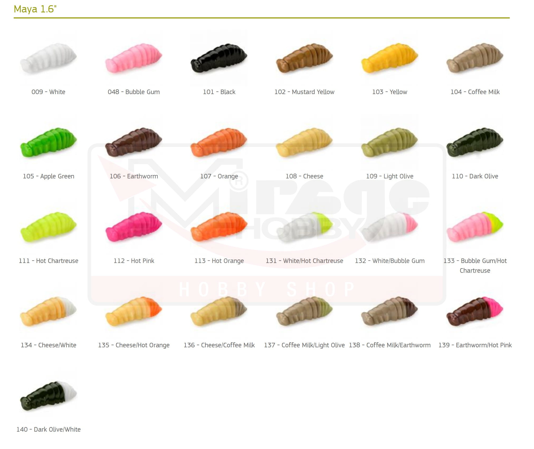 FishUp Maya dostępne są w trzech rozmiarach: 1.4" (2.2g), 1.6" (3.2g) i 1.8" (5g), co zapewnia doskonałą lotność i możliwość dalekich rzutów. Szeroka gama kolorów – ponad 25 odcieni – pozwala dopasować przynętę do każdych warunków. Co więcej, intensywny serowy aromat dodatkowo wabi pstrągi, zwiększając Twoje szanse na udany połów.
