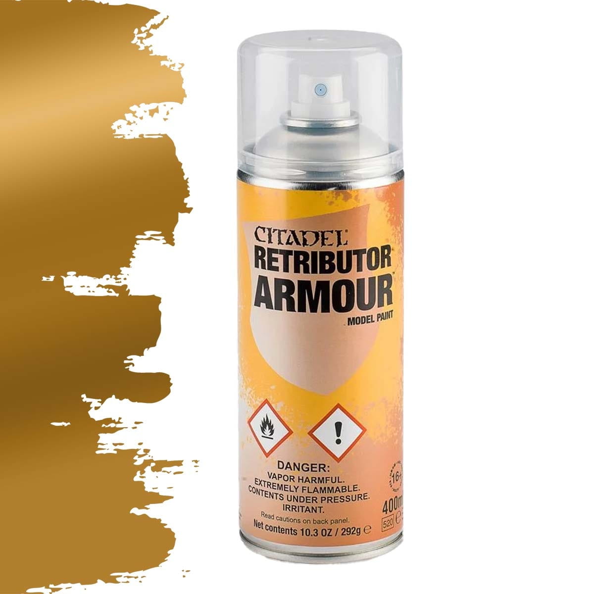Kolor w tym sprayu jest dokładnie taki sam jak kolor Citadel Base: Retributor Armour, więc jeśli jakakolwiek część modelu zostanie pominięta podczas natryskiwania, szybkie uzupełnienie odpowiednią farbą zapewni kompletną warstwę bazową.
