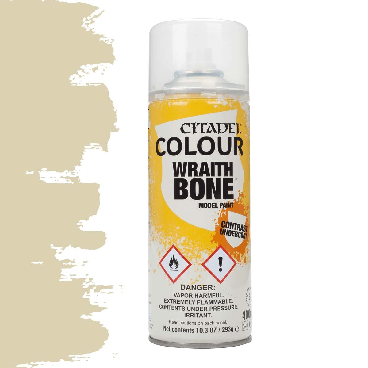 Kolor w tym sprayu jest dokładnie taki sam jak kolor Citadel Base: Wraithbone, więc jeśli jakakolwiek część modelu zostanie pominięta podczas natryskiwania, szybkie uzupełnienie odpowiednią farbą zapewni kompletną warstwę bazową.