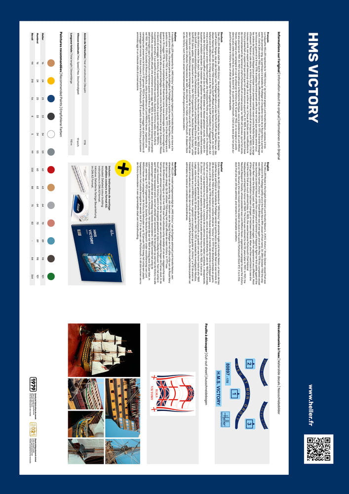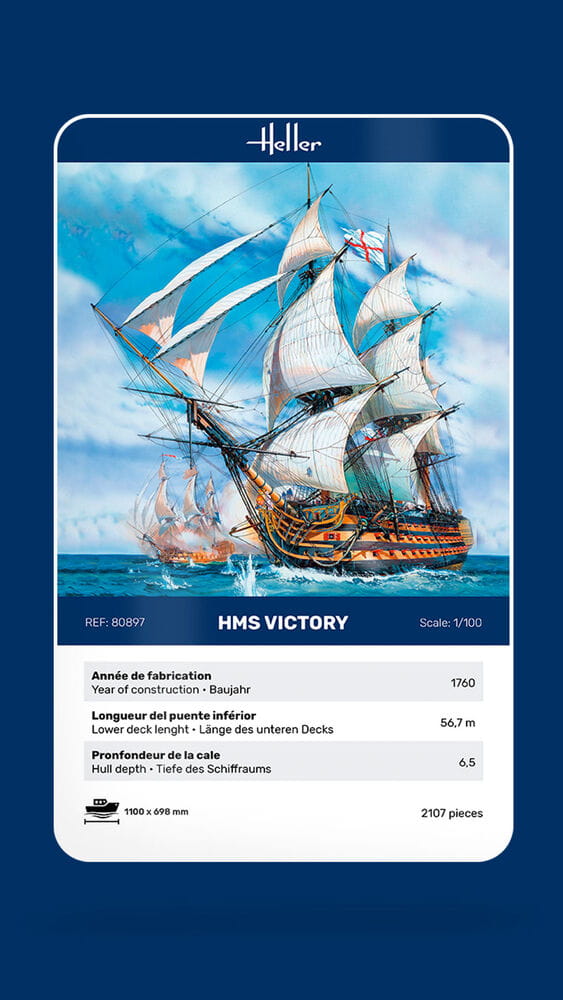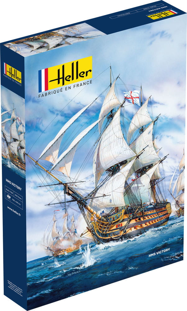 Model HELLER to „H.M.S.” angielskiego admirała Lorda Horatio Nelsona. Victory”, trzypokładowy statek, który brał udział w bitwie pod Trafalgarem i jest piątym okrętem Royal Navy o tej nazwie.