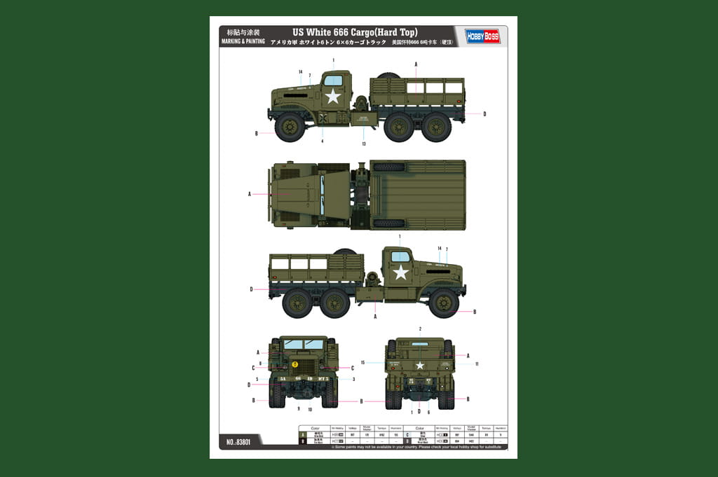 HOBBY BOSS 83801 1:35 US White 666 Cargo Truck (Hard Top)