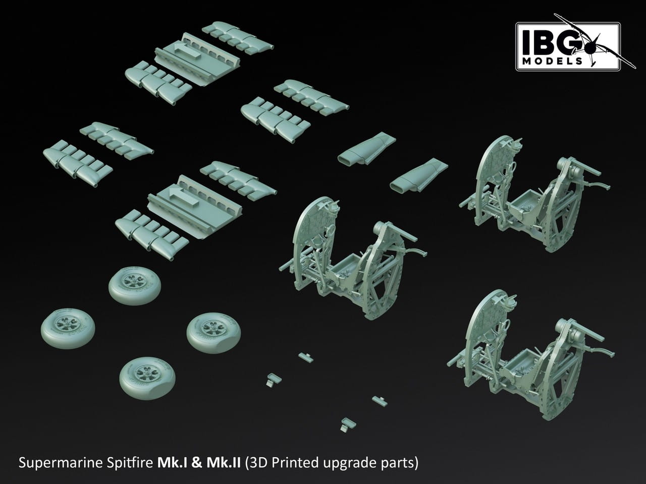 - Części plastikowe i fototrawione do budowy dwóch pełnych modeli Spitfire Mk.I i Mk.II
