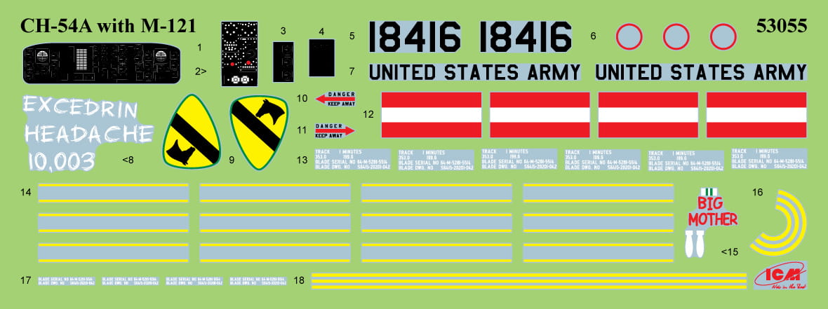 ICM 53055 1:35 US Helicopter Sikorsky CH-54A Tarhe with M-121 bomb (77cm dług)
