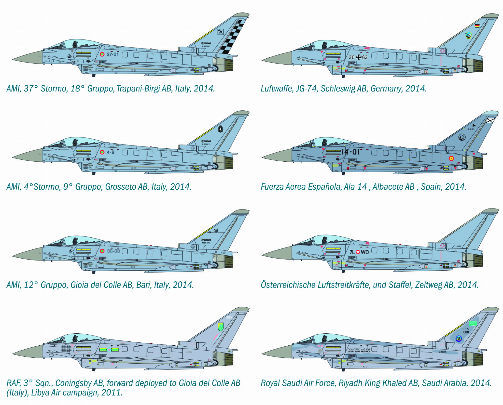 Dzięki dwóm silnikom turbowentylatorowym Eurojet EJ200 Typhoon jest w stanie osiągnąć maksymalną prędkość Mach 2. Technologia pokładowa, wzmocniona systemem sterowania typu fly-by-wire, pozwala uzyskać doskonałą manewrowość w zadaniach bojowych. Wersje dwumiejscowe zostały również opracowane do zaawansowanego szkolenia, aby zapewnić stopniowe przechodzenie pilotów z samolotów, które, podobnie jak włoskie F-104, były znacznie bardziej staromodne i przestarzałe.