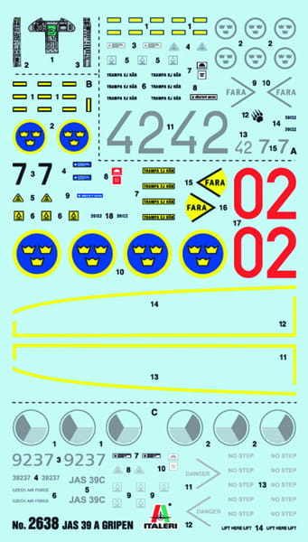 Gripen to standardowy myśliwiec-bombowiec współczesnych szwedzkich sił powietrznych, który wszedł do służby zaledwie kilka lat temu. Niezwykle zwrotna i kompaktowa, wyrafinowana elektronika zapewnia mu możliwości lotu w każdych warunkach pogodowych w nocy. Samolot może być wyposażony w szereg najnowszych broni powietrznych i powietrznych.