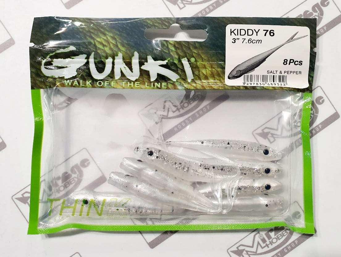 Guma Gunki Kiddy posiada nacięcie w grzbietowej części korpusu, pozwalające ukryć offsetowy hak i znacząco ograniczyć ryzyko zaczepów. To wyśmienita przynęta na delikatnie biorące ryby w łowiskach o dużej presji, oraz wszędzie tam, gdzie drapieżniki nękają atakami stadka drobnicy.