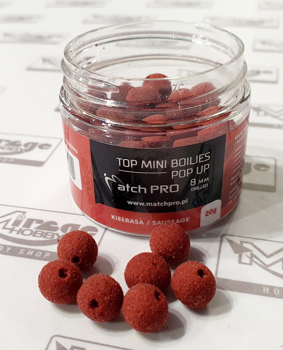Kulki Match Pro Top Boilies Pop Up wyróżnia idealna miękkość, dzięki której ryby pewnie ją pobierają. Wyjątkowa pływalność kulki utrzymuje się przez bardzo długi czas, zapewniając odpowiednią prezentację przynęty nad dnem. Dodatkowo kulki posiadają otwór, dzięki któremu bardzo łatwo i szybko można założyć przynętę.