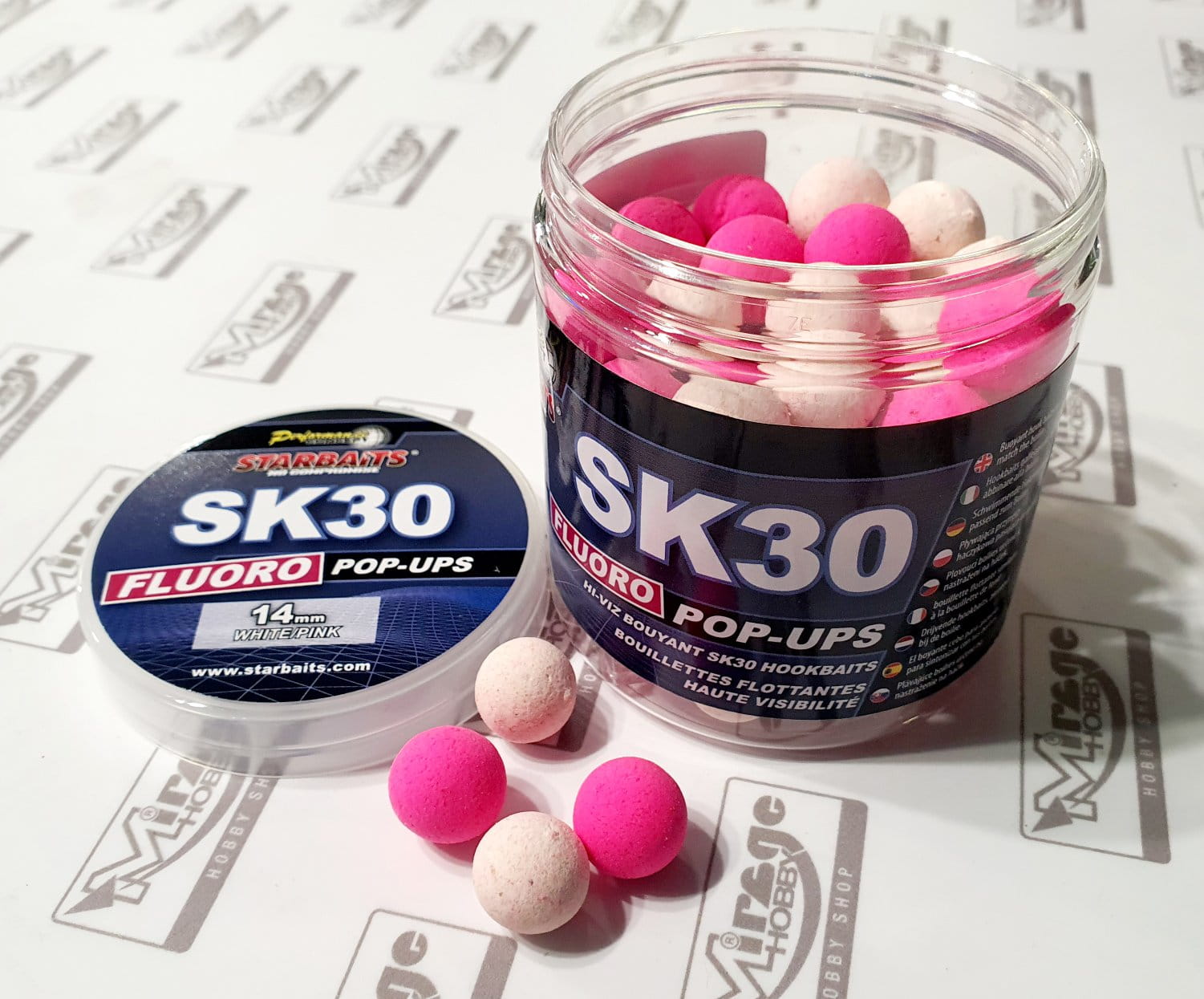 Pływające kulki Starbaits SK30 w kolorze Fluo. Wykonane z wysokiej jakości mączek rybnych, rozpuszczalnych protein rybnych, ekstraktu z ryby morskiej, squida oraz kryla. Kulka zawiera dużo naturalnych oleji oraz płynnych pokarmów. Jest to przynęta sprawdzająca się zarówno w zimnej wodzie jak i ciepłej. Jest to jedna z najbardziej udanych kulek w firmie Starbaits.