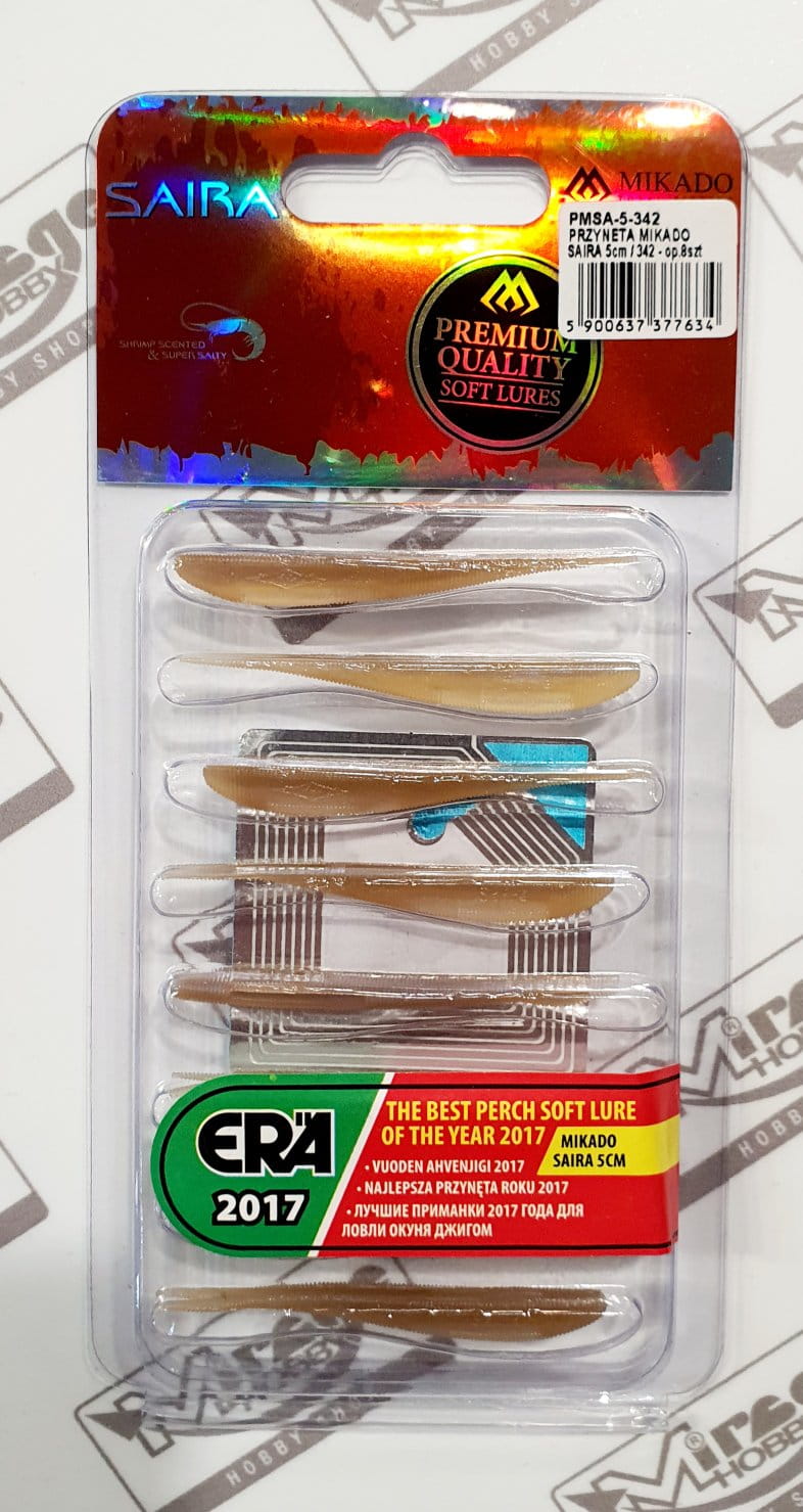 Saira to flagowy produkt firmy Mikado. Guma typu jaskółka uwielbiana przez najlepszych polskich wędkarzy. Zakres jej stosowania jest ogromny. Możemy używać ją zarówno przy użyciu klasycznej główki jigowej, jak i bardziej wyszukanych metod takich jak „drop-shot” lub hak offsetowy z czeburaszką.