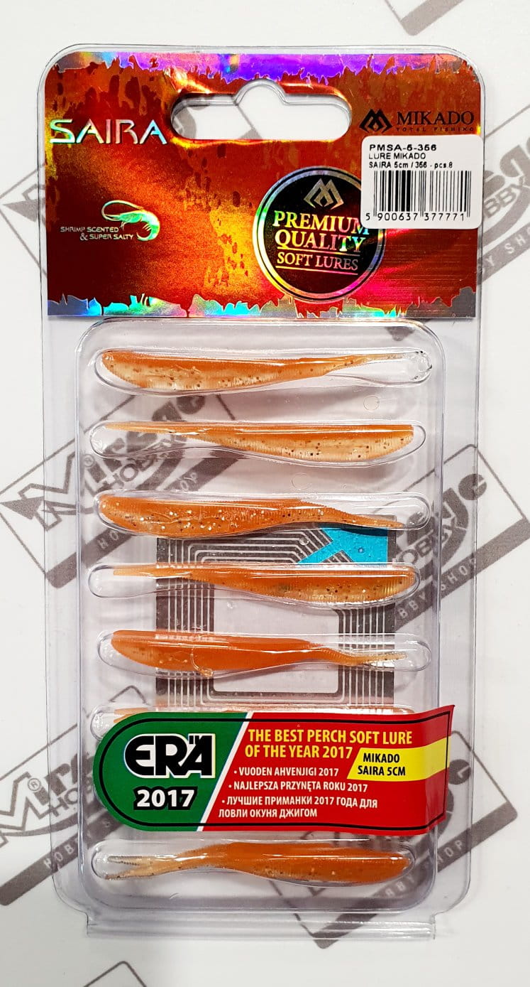 Saira to flagowy produkt firmy Mikado. Guma typu jaskółka uwielbiana przez najlepszych polskich wędkarzy. Zakres jej stosowania jest ogromny. Możemy używać ją zarówno przy użyciu klasycznej główki jigowej, jak i bardziej wyszukanych metod takich jak „drop-shot” lub hak offsetowy z czeburaszką.