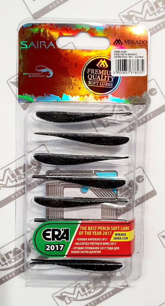 Saira to flagowy produkt firmy Mikado. Guma typu jaskółka uwielbiana przez najlepszych polskich wędkarzy. Zakres jej stosowania jest ogromny. Możemy używać ją zarówno przy użyciu klasycznej główki jigowej, jak i bardziej wyszukanych metod takich jak „drop-shot” lub hak offsetowy z czeburaszką.