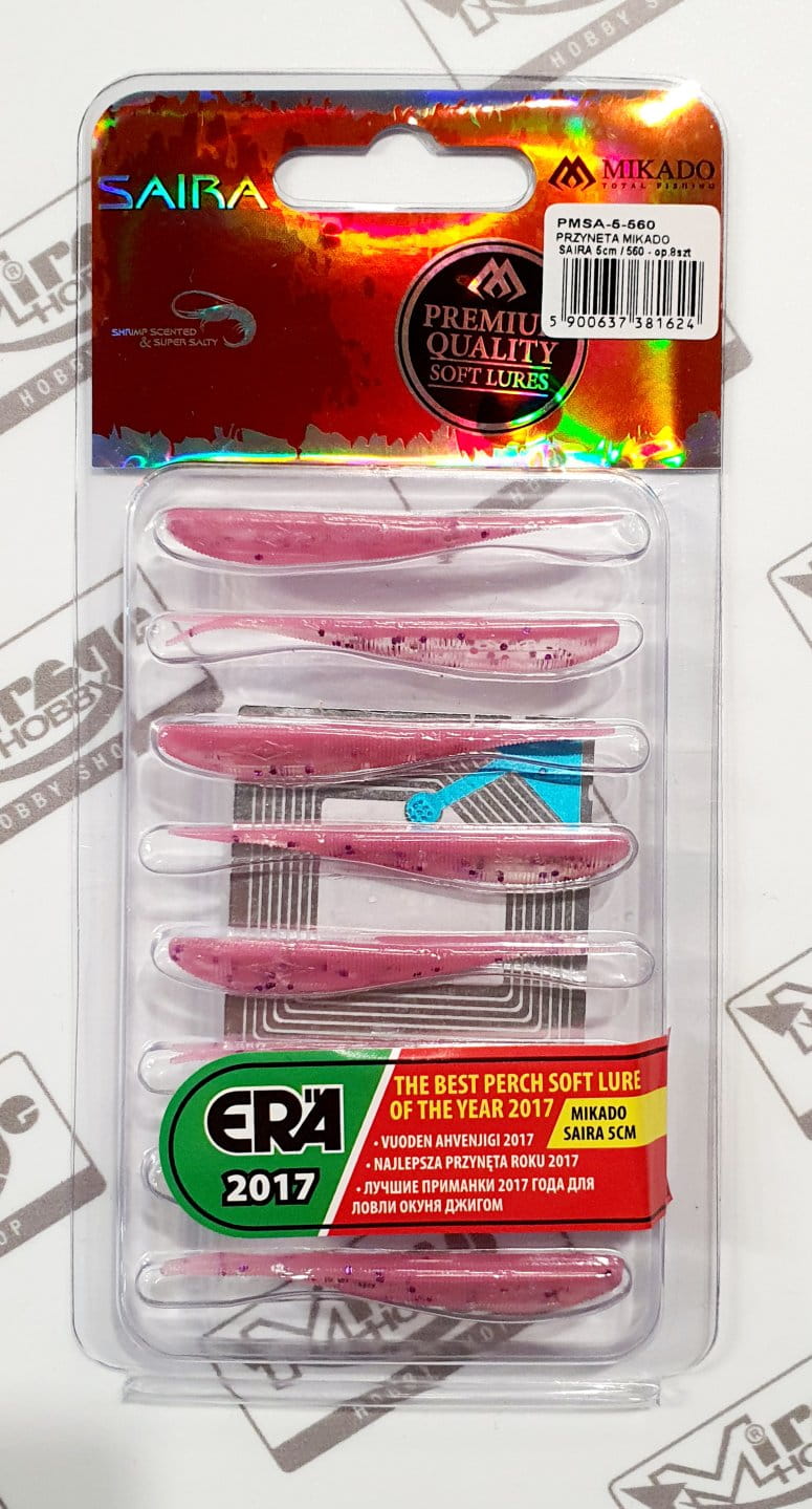 Saira to flagowy produkt firmy Mikado. Guma typu jaskółka uwielbiana przez najlepszych polskich wędkarzy. Zakres jej stosowania jest ogromny. Możemy używać ją zarówno przy użyciu klasycznej główki jigowej, jak i bardziej wyszukanych metod takich jak „drop-shot” lub hak offsetowy z czeburaszką.