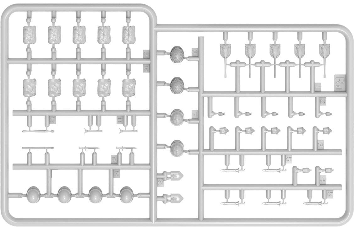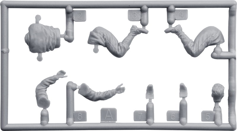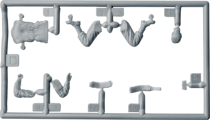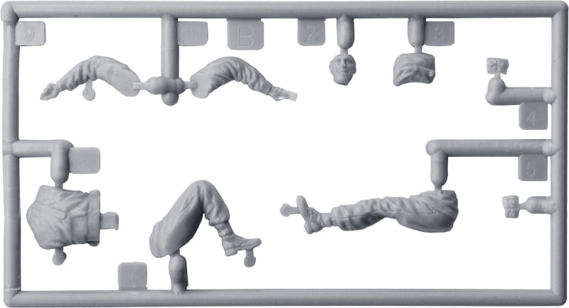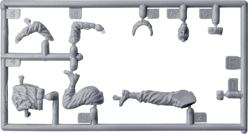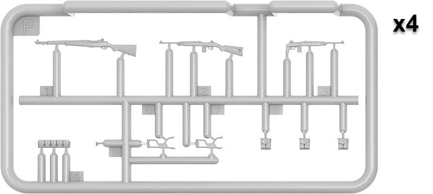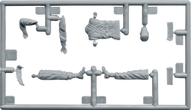 Pudełko zawiera modele pięciu figurek z bronią i wyposażeniem piechoty.