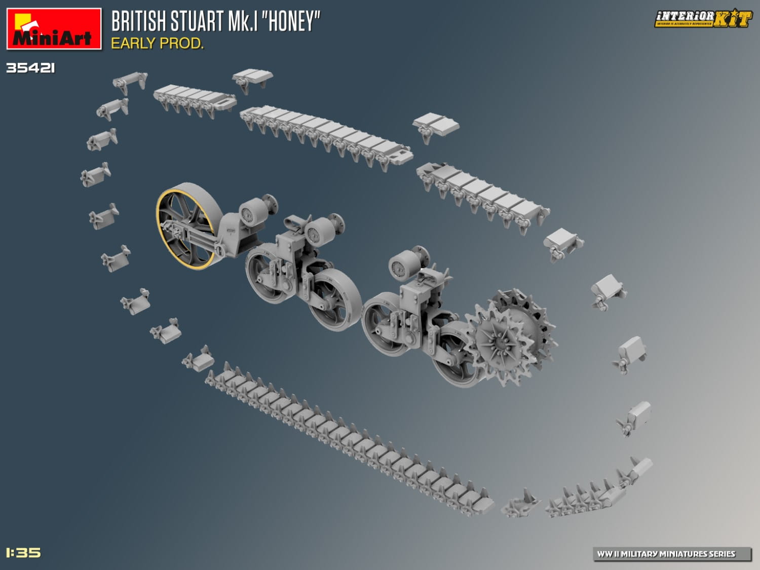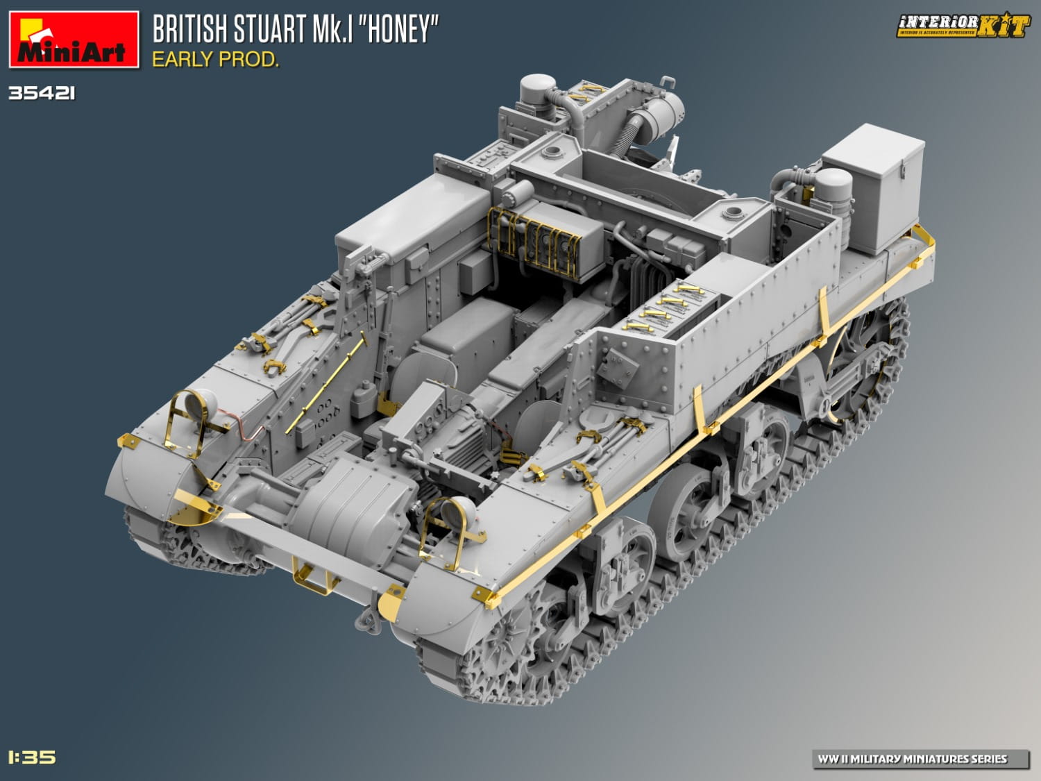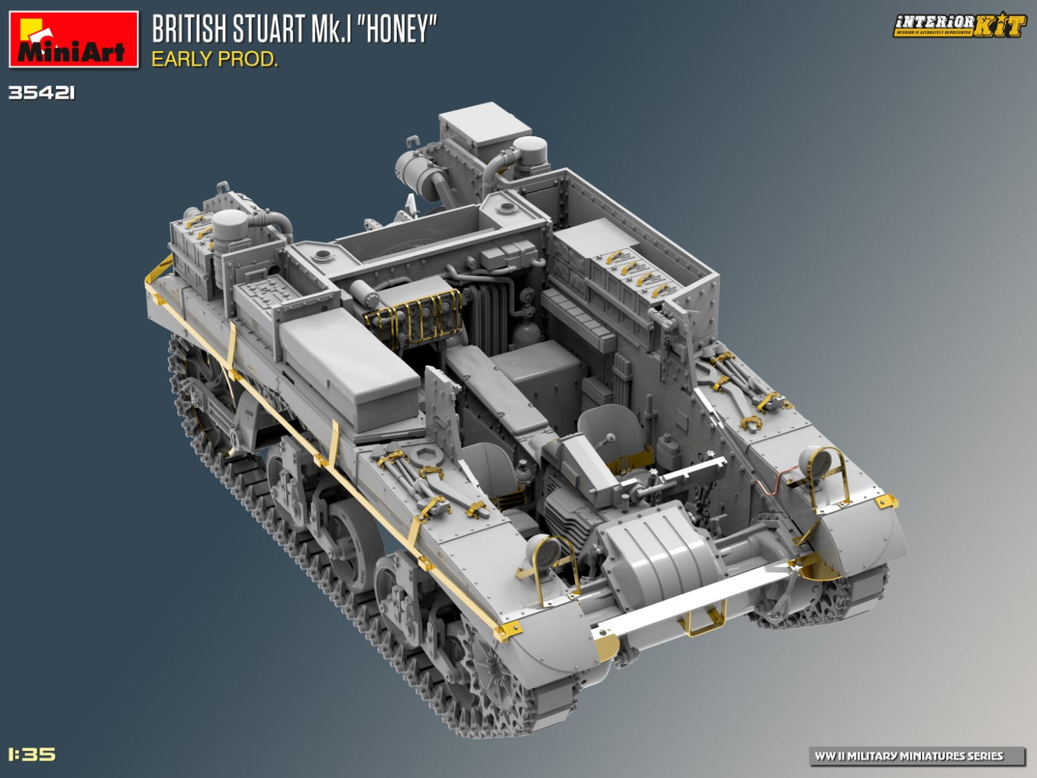 Nadchodzący zestaw MiniArt 35421 przedstawia brytyjski czołg Stuart Mk.I „Honey” Early Production - Interior Kit w skali 1:35.