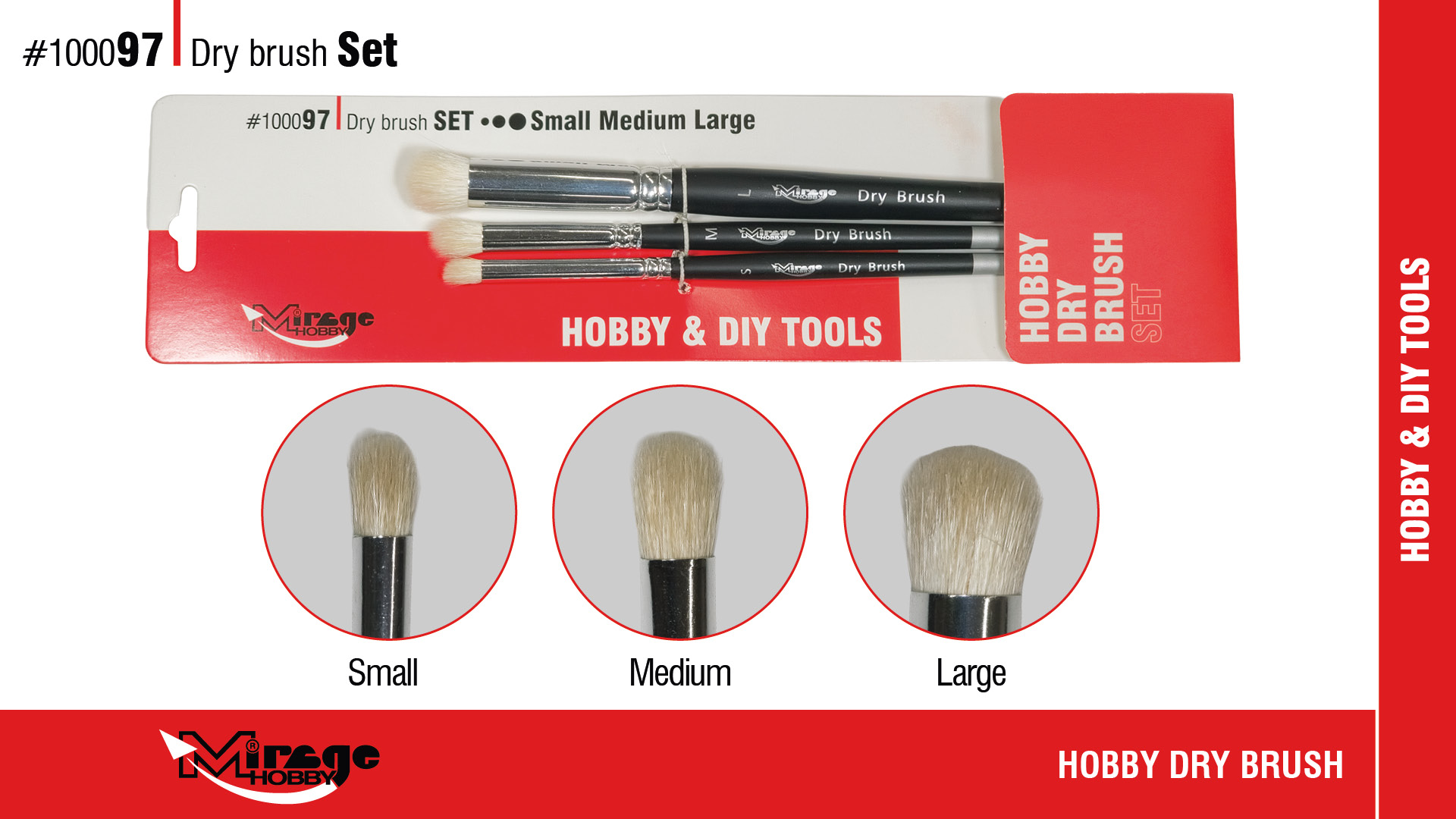 Pędzle Mirage Hobby z serii Dry Brush występują na sztuki oraz w zestawie trzech rozmiarów - Small Medium Large.