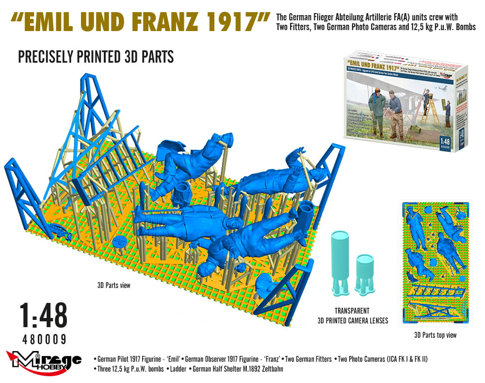 Mirage 480009 1:48 WWI German FA(A) Units Crew 'Emil und Franz 1917' w/Equipment