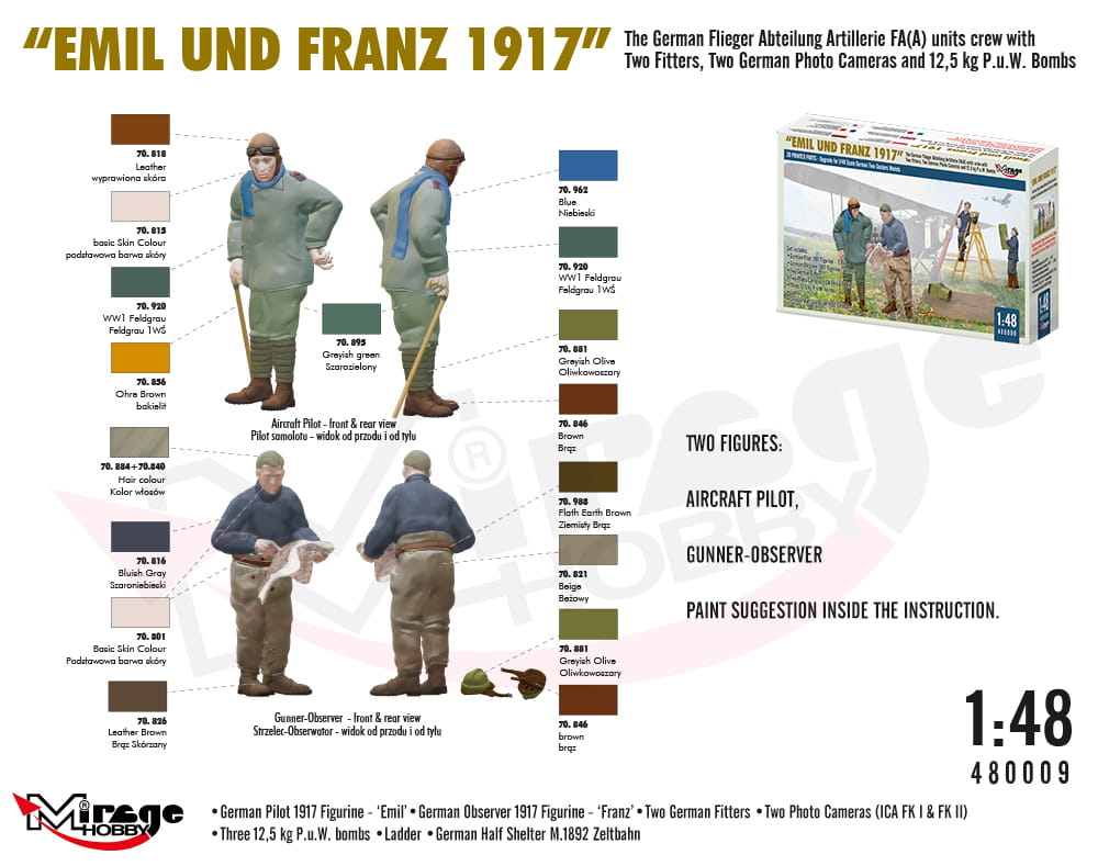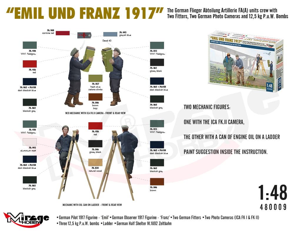 MIRAGE 480009 1:48 WWI German FA(A) Units Crew 'Emil und Franz 1917' w/Equipment