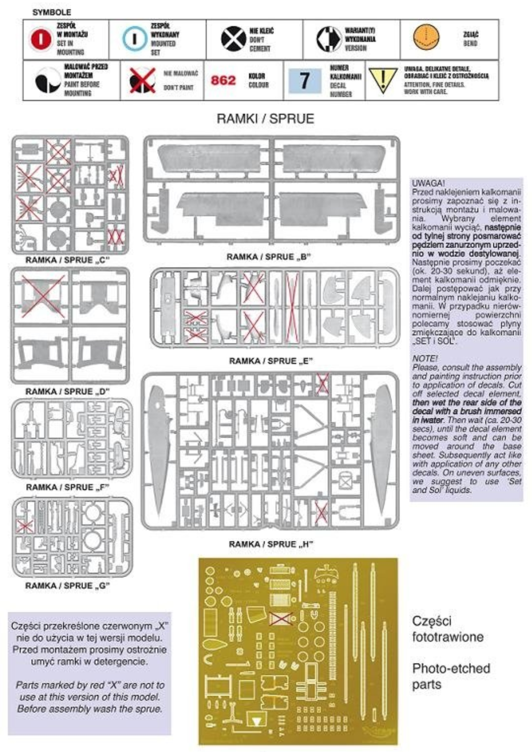 Zestaw zawiera kalkomanie i elementy fototrawione.
