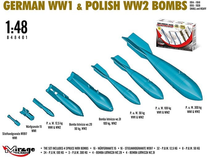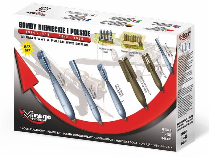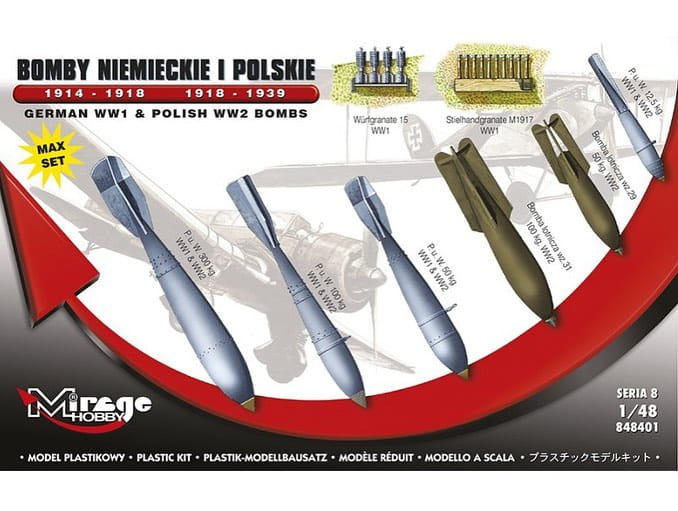 MIRAGE 848401 1:48 Bomby niemieckie 1914-1918 / polskie 1918-1939 [MAX SET]