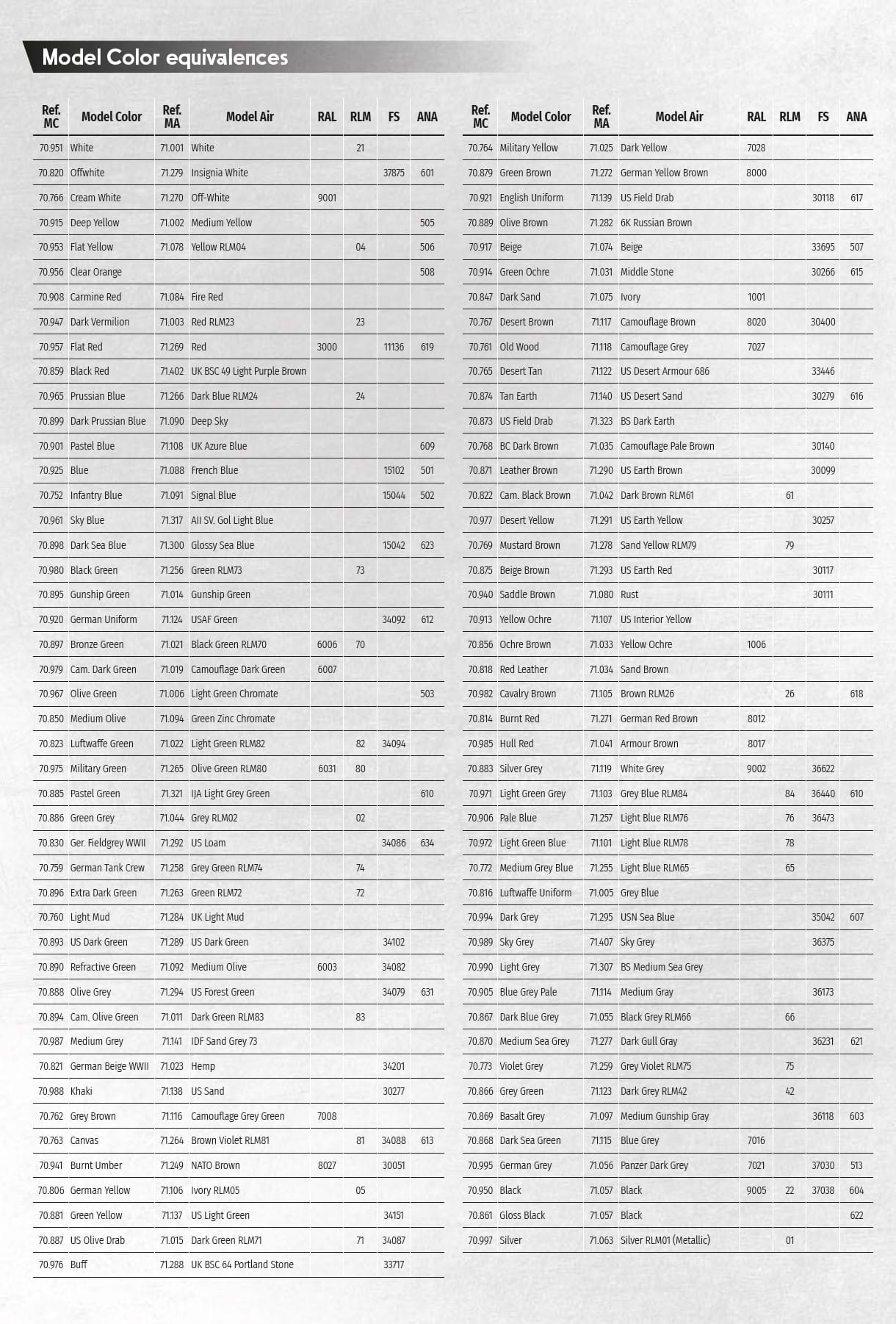- MODEL COLOR 001 WHITE 70951 (FS37925/RAL9016/RLM21)