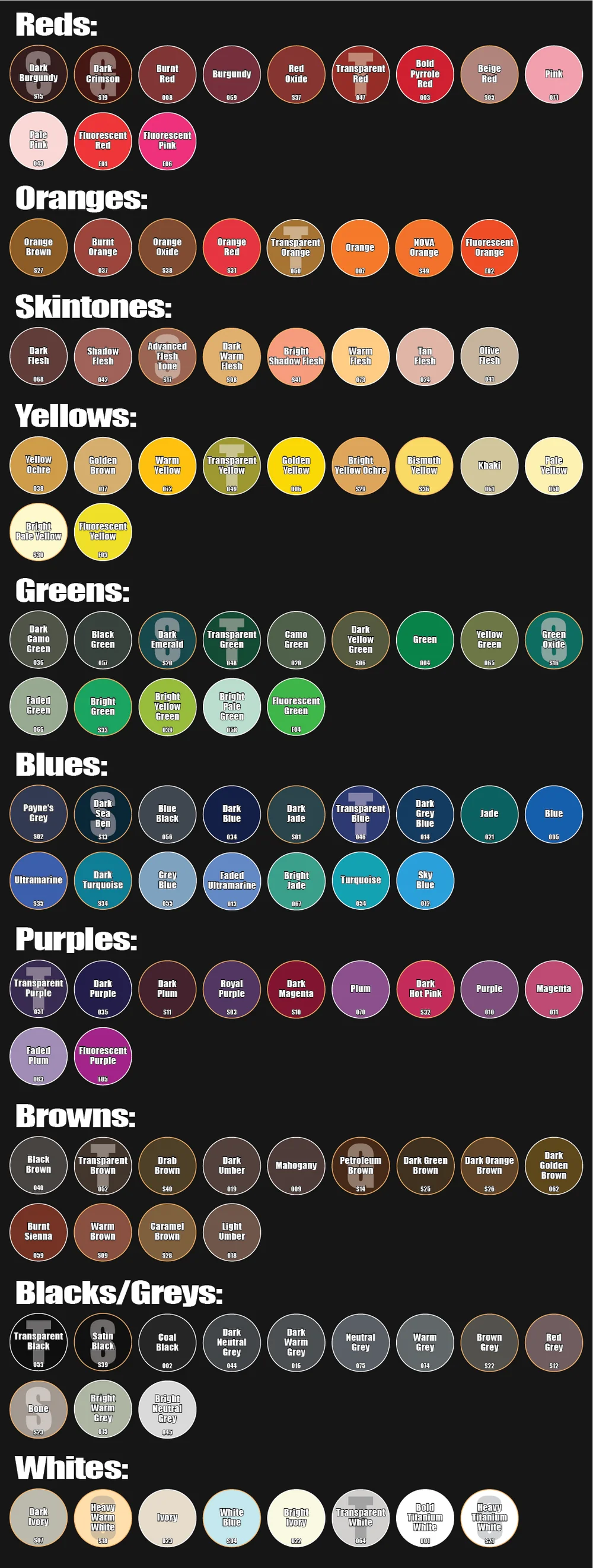 Seria farb Monument Pro Acryl składa się z kolorów: