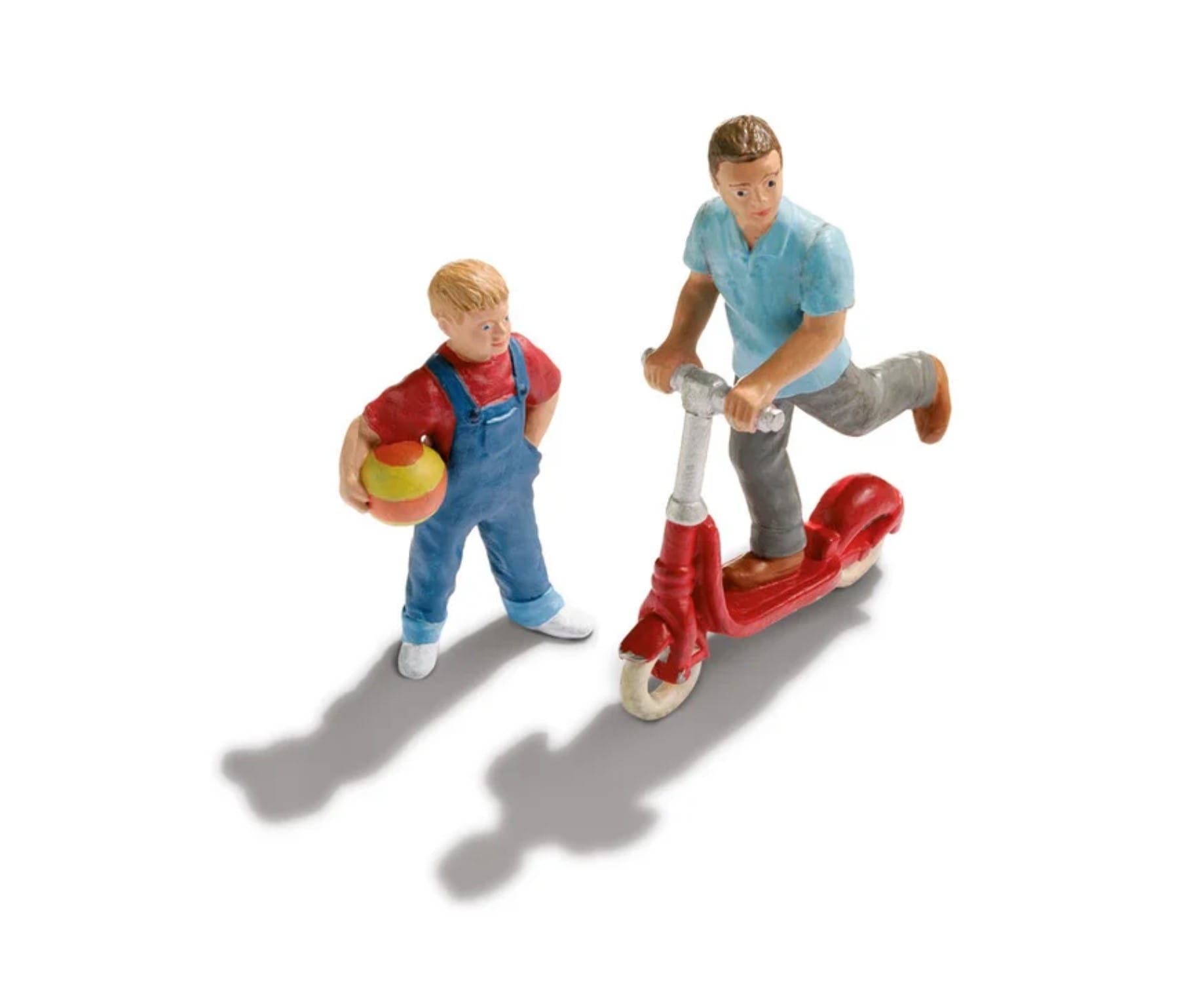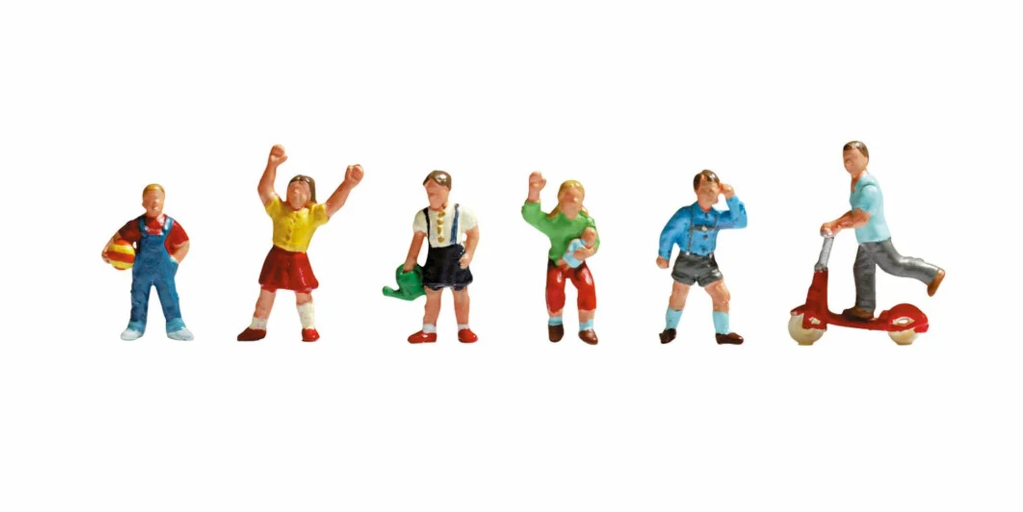 Zestaw składa się z 6 różnych dzieci, które wykonują różne typowe czynności, takie jak jazda na hulajnodze czy gra w piłkę.