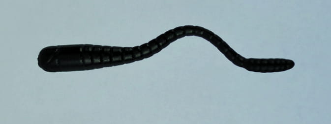 Korpus składa się z głowy o średnicy 5 mm, która w wodzie natychmiast zamienia się w długi, bardzo kręty ogon. Ta przynęta przeskakiwana między kamieniami lub używana w rotacji ma całkowicie unikalny i bardzo atrakcyjny ruch.